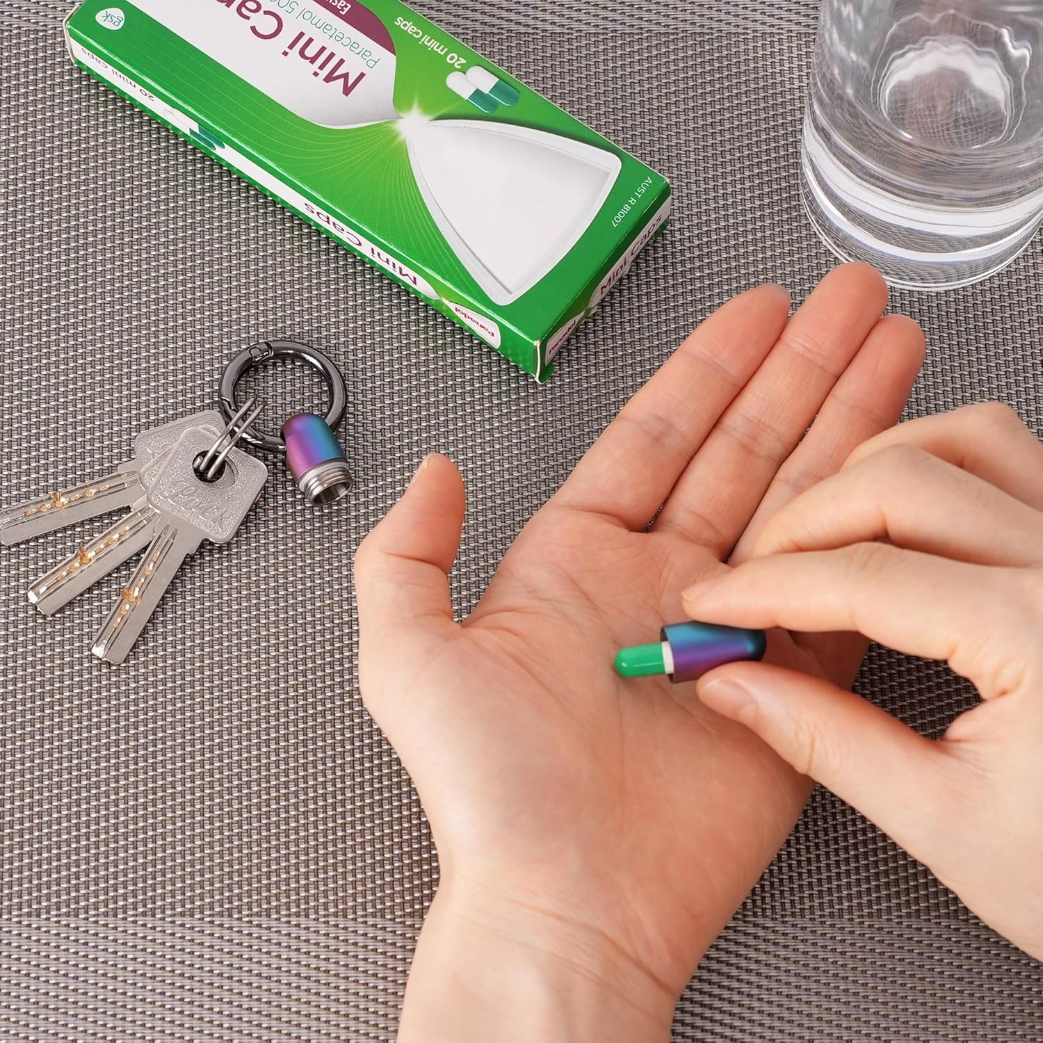 Micro Keychain Pill Holder Titanium Waterproof Mini Pill Container for Emergency Medicine,Travel Purse Pocket (Blue)