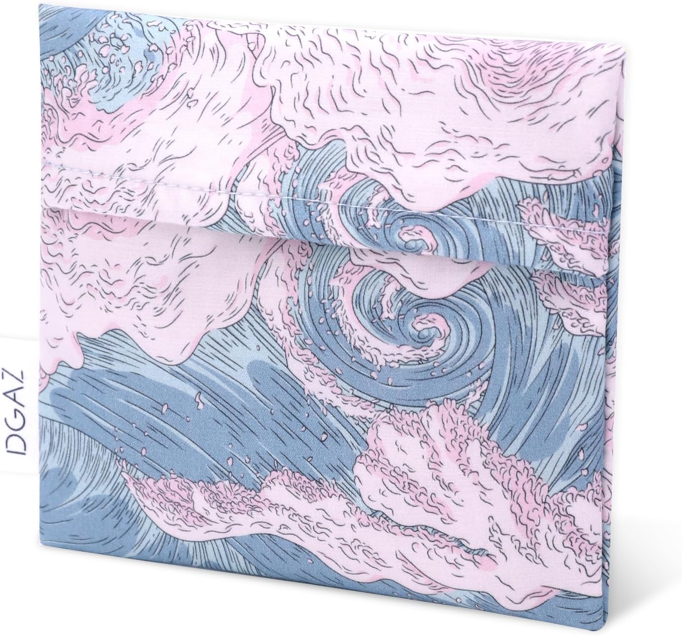 DGAZ Sanitary Napkin Storage Bag, Period Bag for Teen Aged Girls, Portable Period Bag for Panty Liners/Menstrual Cup/Small Tampons,Mini Makeup Bag for Purse(Sea and Waves)