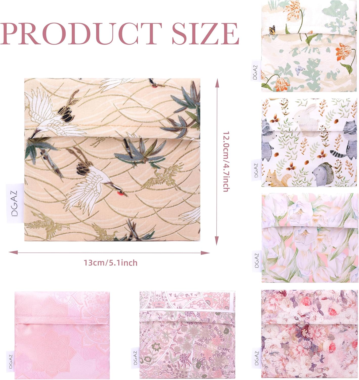 - 💕 【MEET MULTIPLE OCCASIONS】-Pad storage pouch is compact in size: 5.1 x 4.7 inches. Great for storing sanitary napkins, tampons with applicators, panty liners, small personal cleansing kits, reusable pads and more. Nice menstrual bag. Convenient for office, business trips, shopping and traveling.