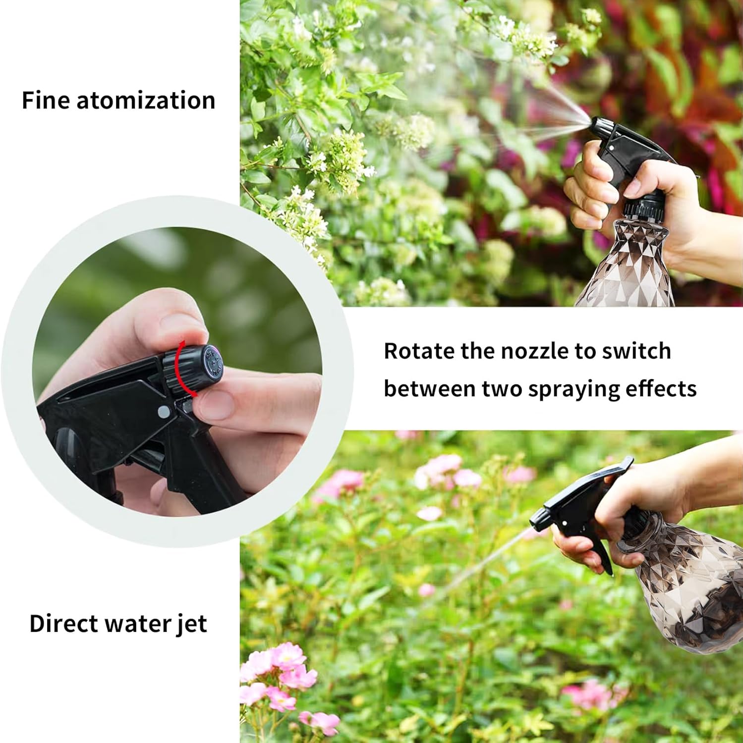 - Adjustable Head Design: Adjustable nozzle with two spray modes, you can change the mode just by rotating the nozzle head. Spray bottles for cleaning solutions can easily meet your different needs.