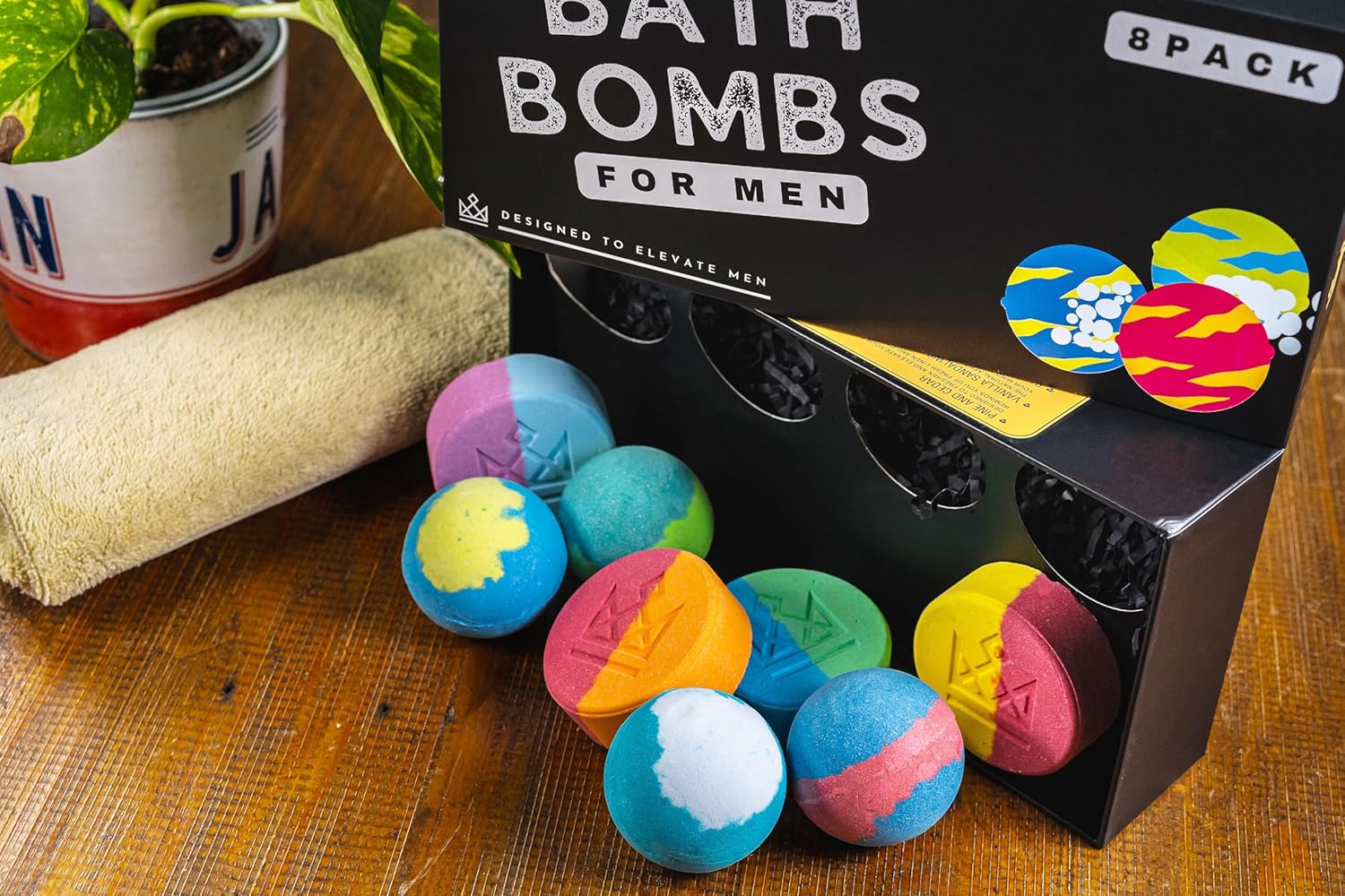 Bath Bombs for Men - Unique Sphere & Disc Shape - 8 Bath Bombs Mix of 5oz & 2.5oz - Gifts for Men - Bubble Bath Set