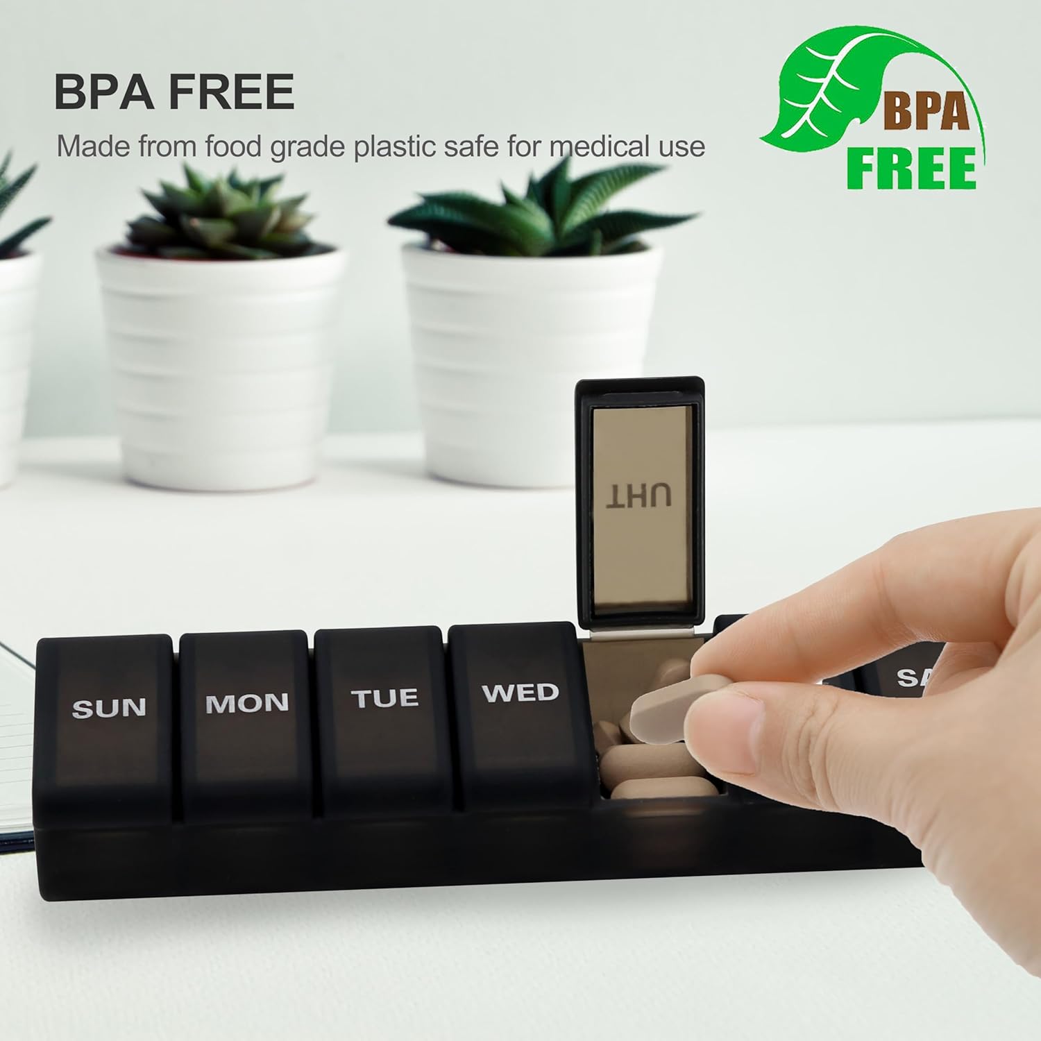 - EXCELLENT PRINTING -- the pill case organizer is printed by the updated 3D printing technology. Through the test, the letters of this 7 day pill box will not fall off after being used for more than 9000 times.