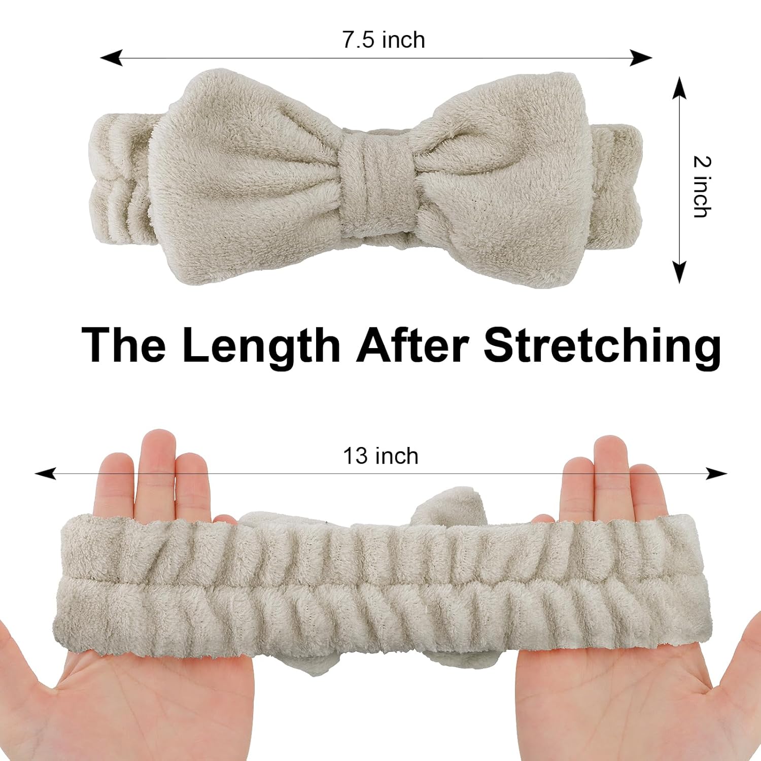 - Product Size:The spa headband can be used for adults as well as for children.The soft texture does not harm to children's skin.The size is about 7.5 inch length and 2 inches width, can be stretched to 13 inch, easily to fit your head size