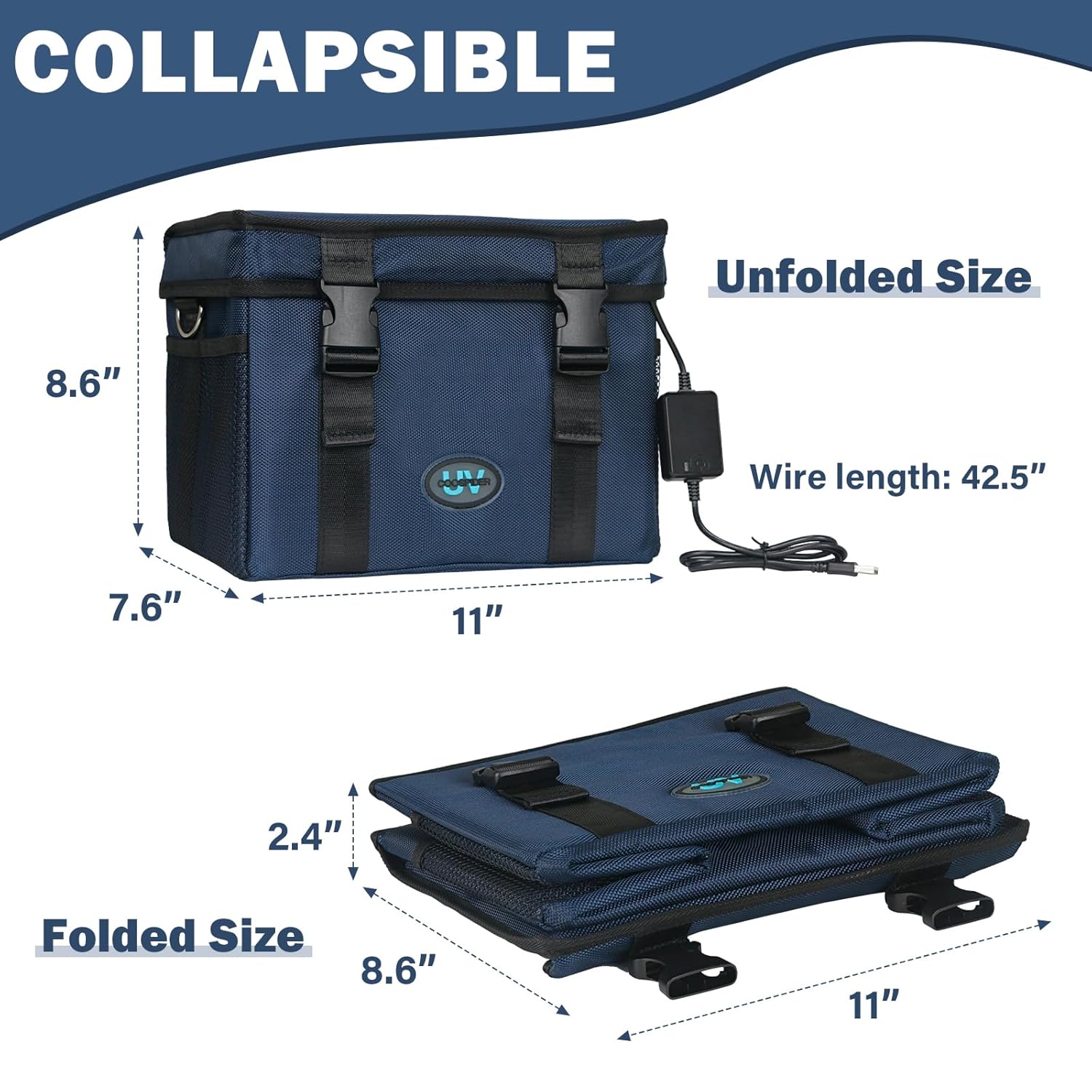 UVC Sanitizer Ozone Box with Timer, Foldable Large Cleaner UV Bag w/strap and USB Port, Portable UVC Light Tote 185nm wavelength for Mask, Cell Phone, Key, Towel 12L/3.17 gal