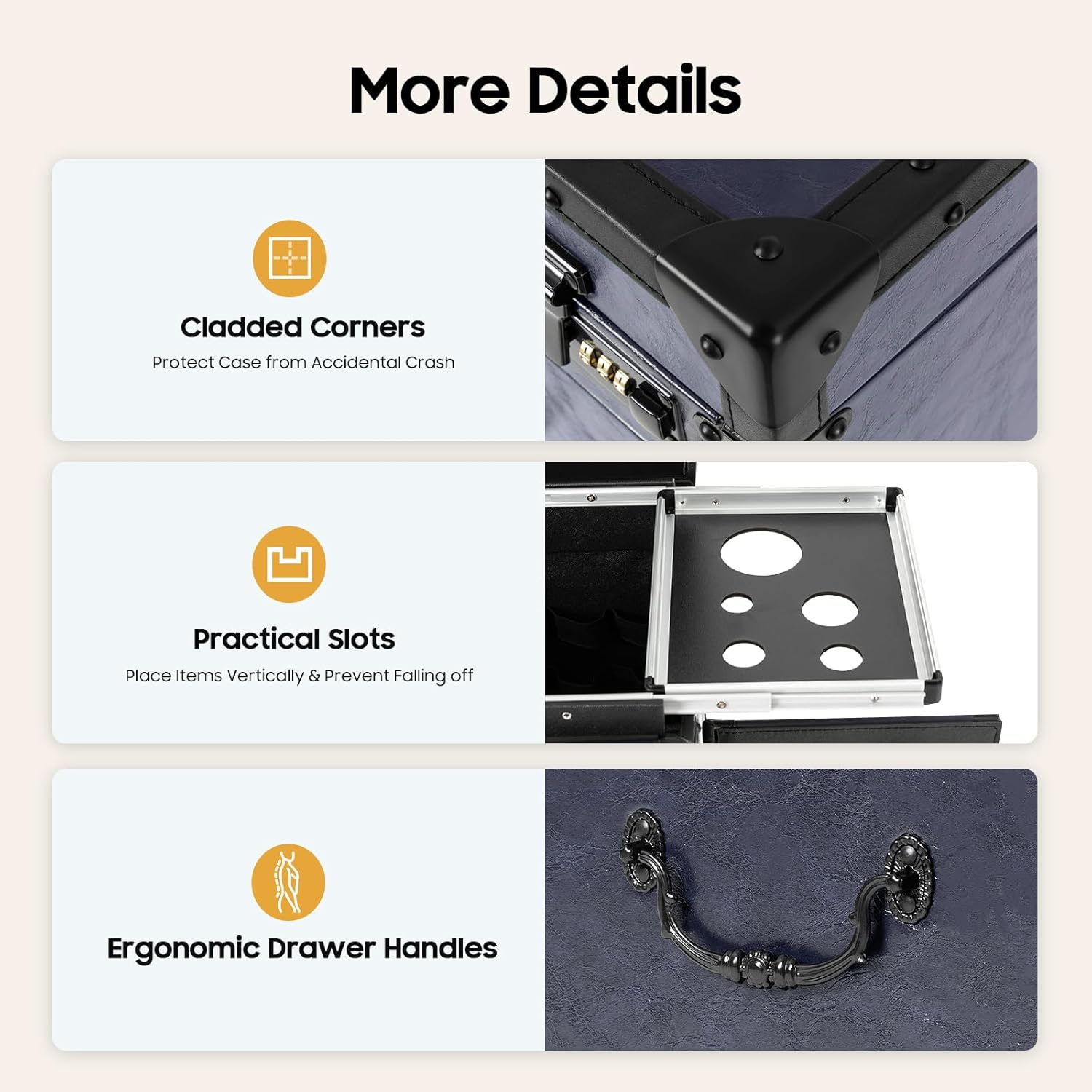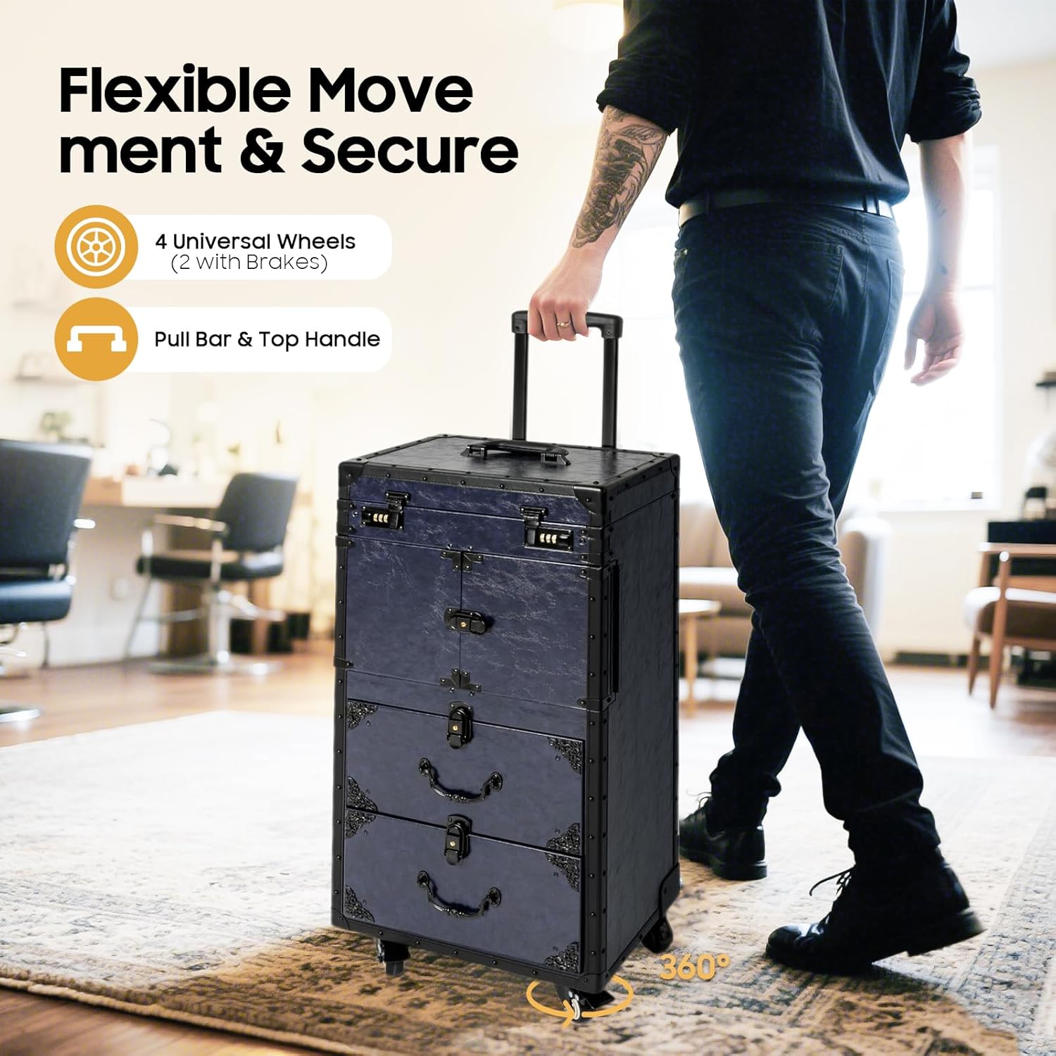 - CONVENIENT STORAGE:Multi-layer large capacity inside the rolling makeup case, each layer is built for storing different tools. You can use the rolling makeup case to store your cosmetics, hair dryer, barber tools, etc. to keep your tools more organized.