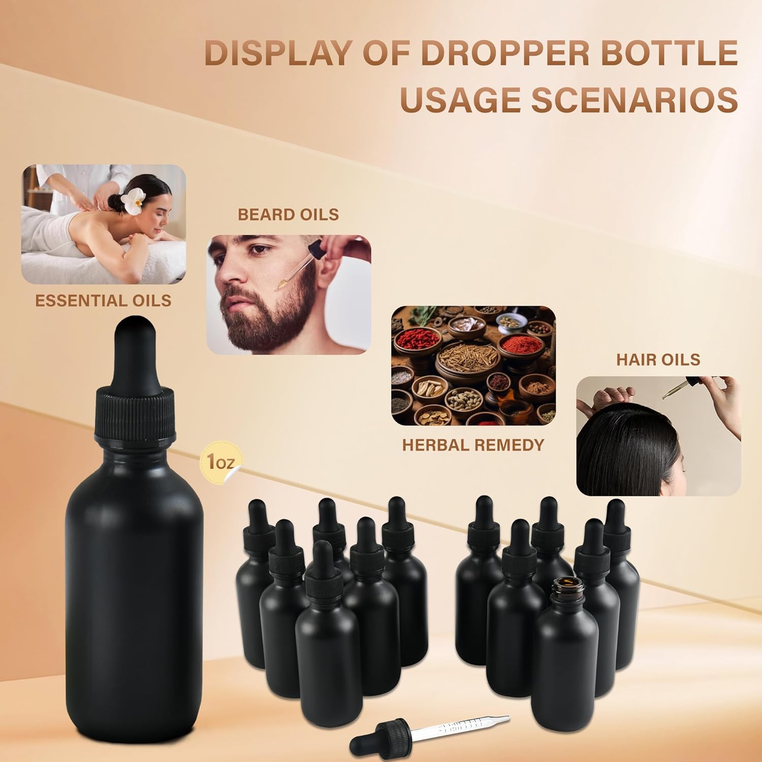 12 Pcs, 2oz Dropper Bottle, Black Glass Eye Dropper Bottle, Tincture Bottles with Dropper, Pretty Finish, Leak-Proof Design, Stronger Suction for All Kinds of Mixed Liquids