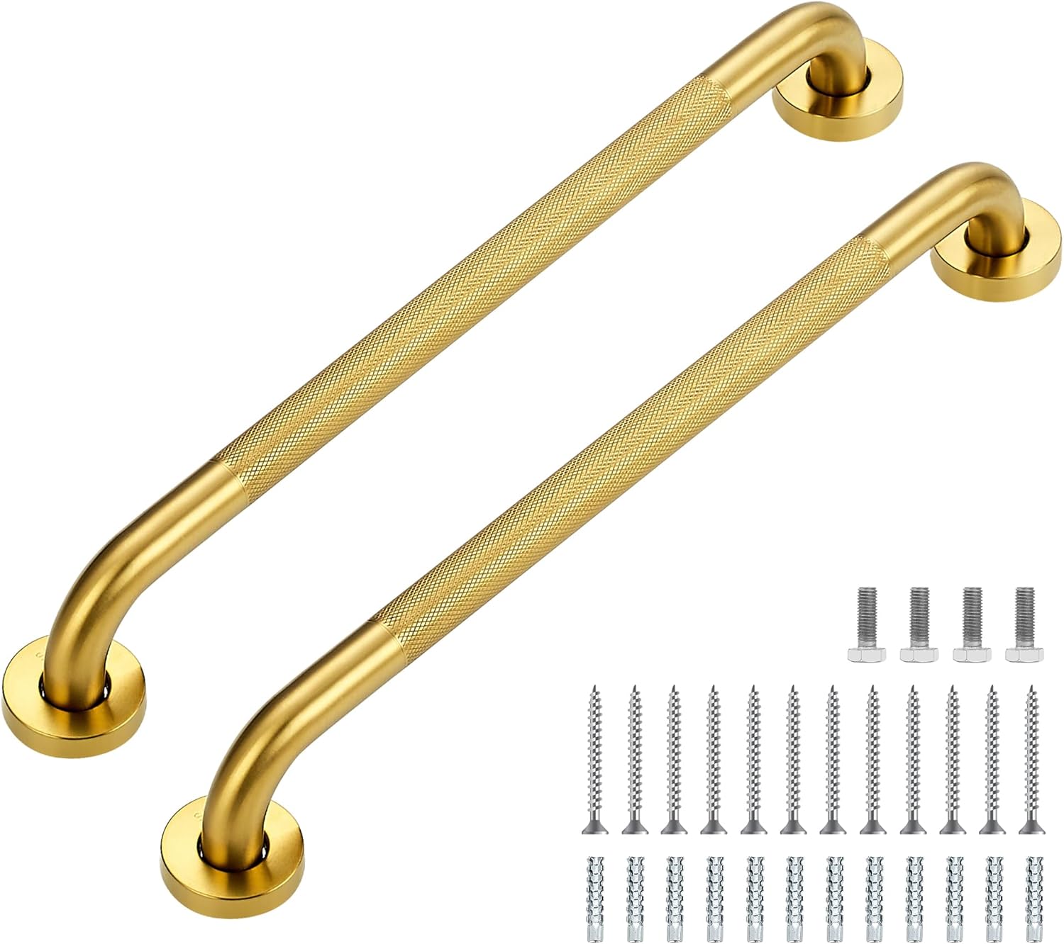 Grab Bars for Shower, 2 Pack 20-Inch Anti Slip Shower Handles for Elderly, Safety Shower Grab Bar, Stainless Steel Handicap Grab Bars for Bathroom,Toilet (Gold, 1" Diameter)