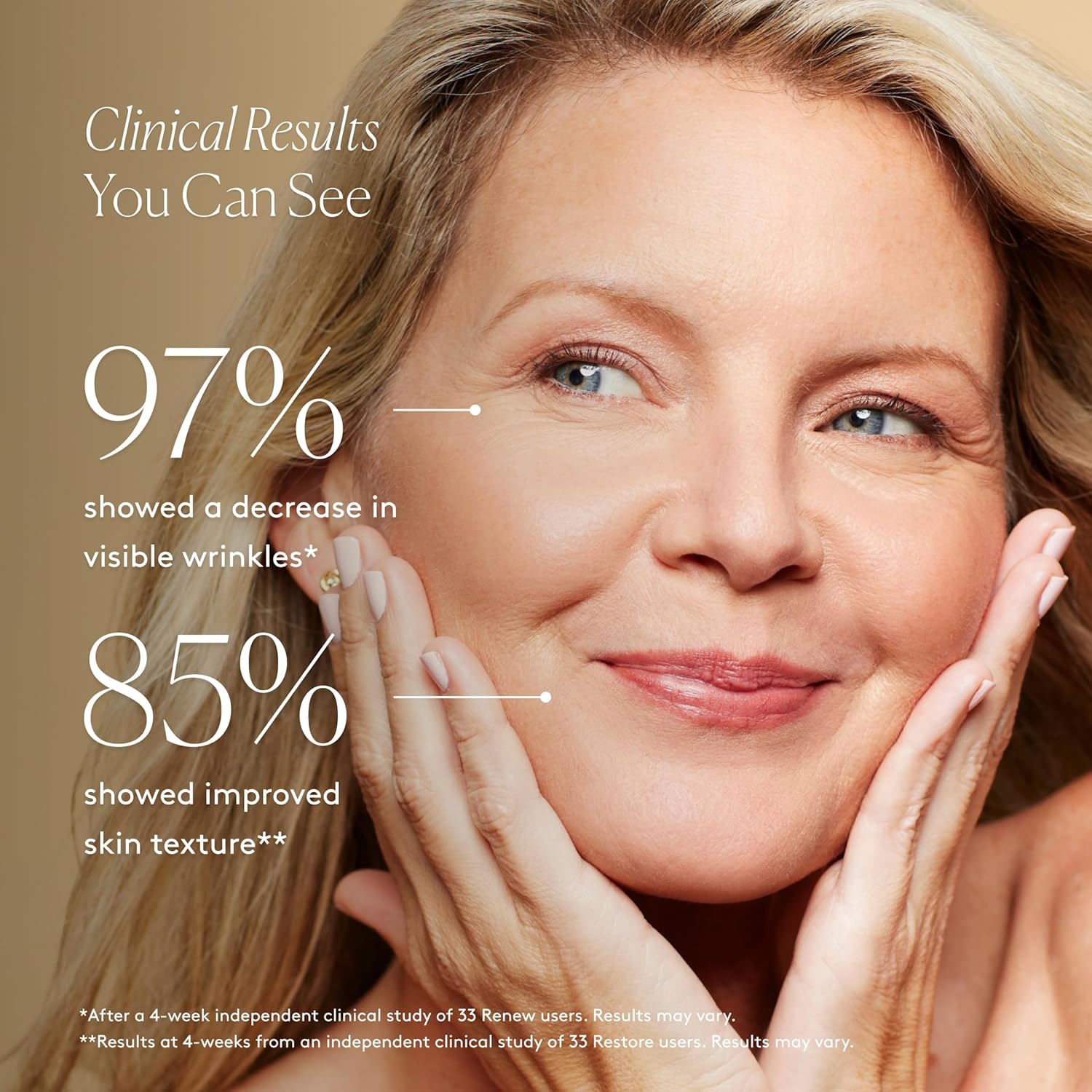 - CLINICAL RESULTS: In an Independent Clinical Study with Renew users, 97% showed a decrease in the appearance of fine lines and wrinkles, and 100% showed an increase in hydration.* In an Independent Clinical Study with Restore users, 100% showed improved skin hydration, and 97% showed a decrease in visible fine lines and wrinkles.**