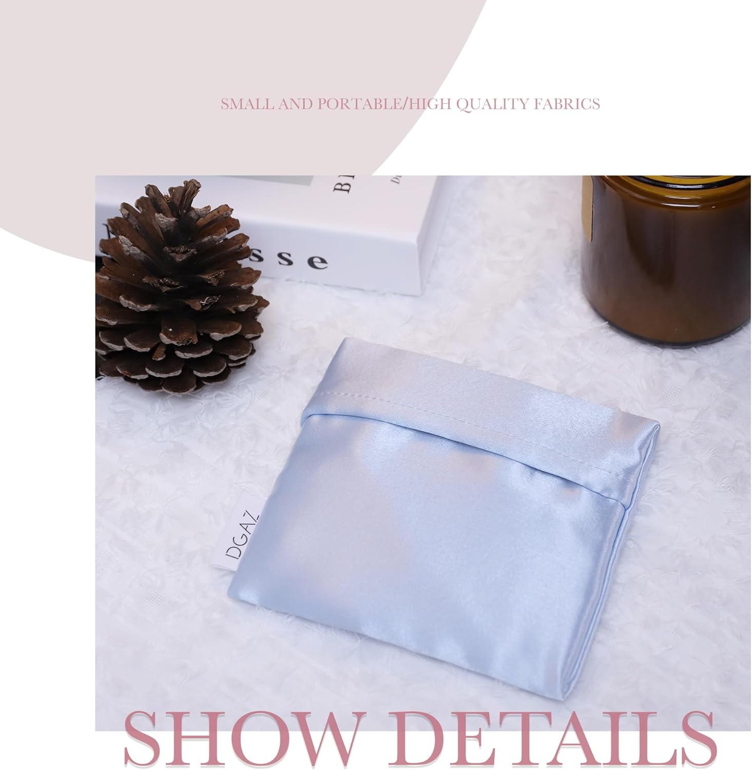 DGAZ Silk Sanitary Napkin Storage Bag, Period Bag for Teen Aged Girls, Portable Period Bag for Panty Liners/Menstrual Cup/Small Tampons,Mini Makeup Bag for Purse(Celeste)