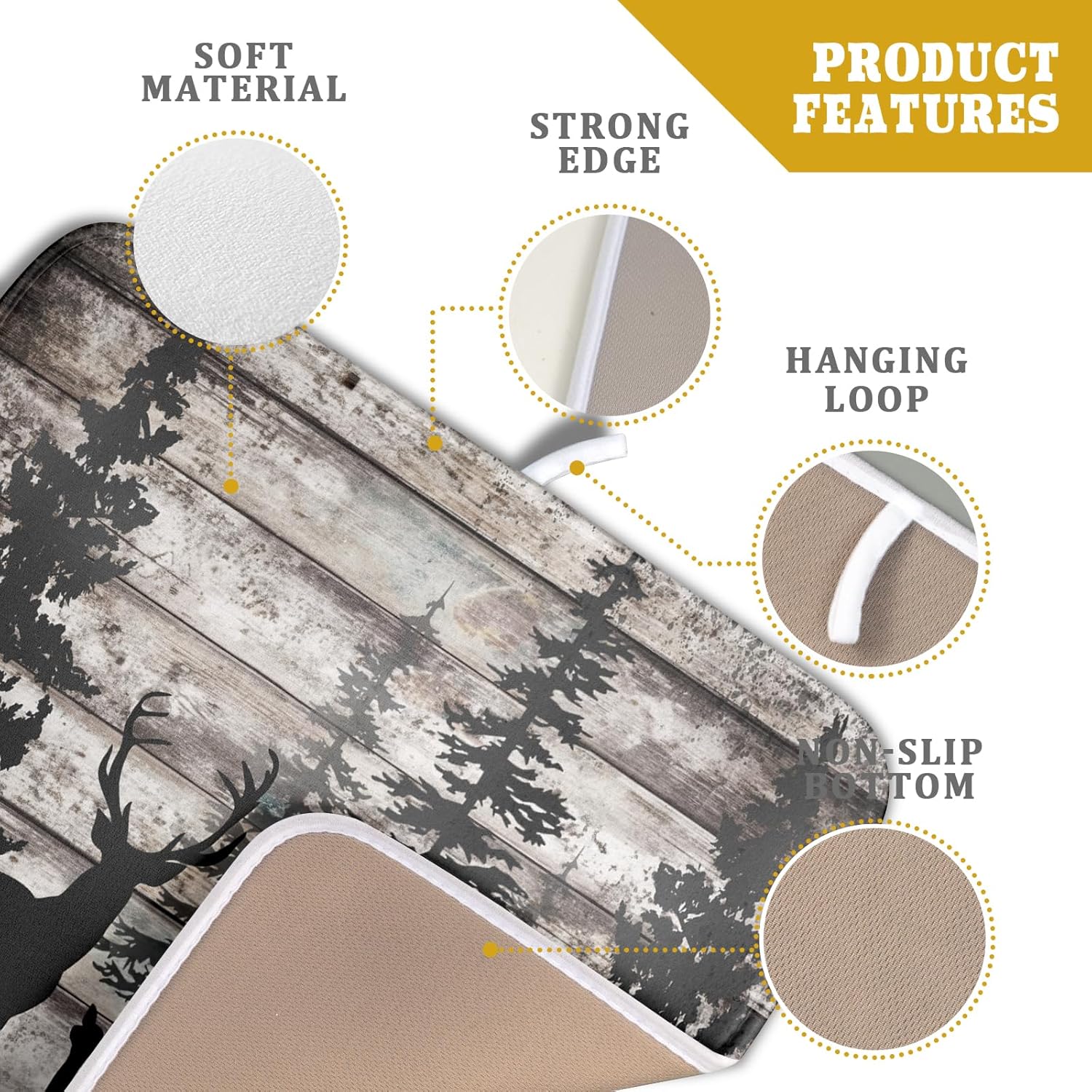 - 【Wide Usage】The dish drying mat designed with woodland hunting pattern, it is beautiful, soft, and durable. Not only a dish drying mat, cup mat, heat resistant mat, you can also use it as a kitchen countertop insulation mat. It is also a good choice to use it as a pet mat, picnic mat.