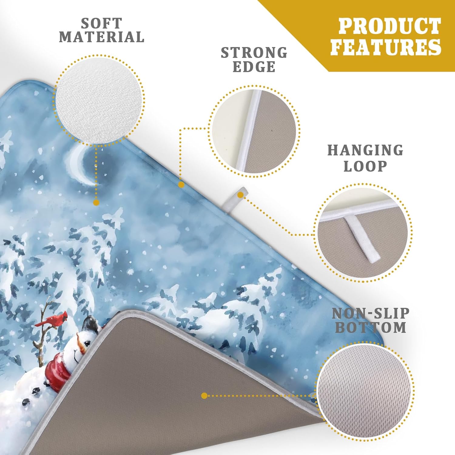 - 【Easy to Storage】This Christmas snowman design drying mat with hang rope, soft and foldable, durable, easy to storage it by hanging or folding it up in a drawer or tuck it elsewhere. Perfect for tight spaces like campers, boats and cottages where having a dual purpose item will come in handy.