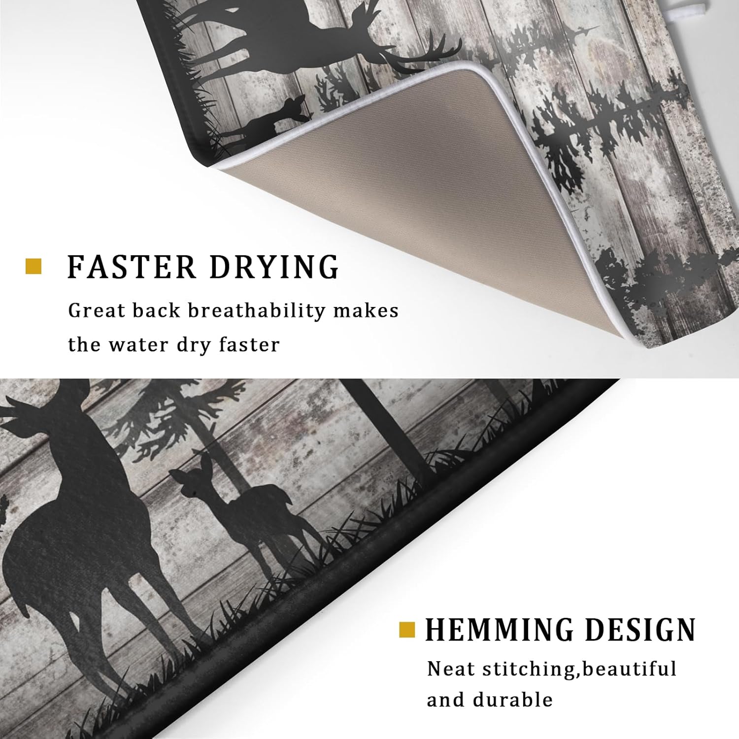 - 【Easy to Storage】This animal deer design drying mat with hang rope, soft and foldable, durable, easy to storage it by hanging or folding it up in a drawer or tuck it elsewhere. Perfect for tight spaces like campers, boats and cottages where having a dual purpose item will come in handy.