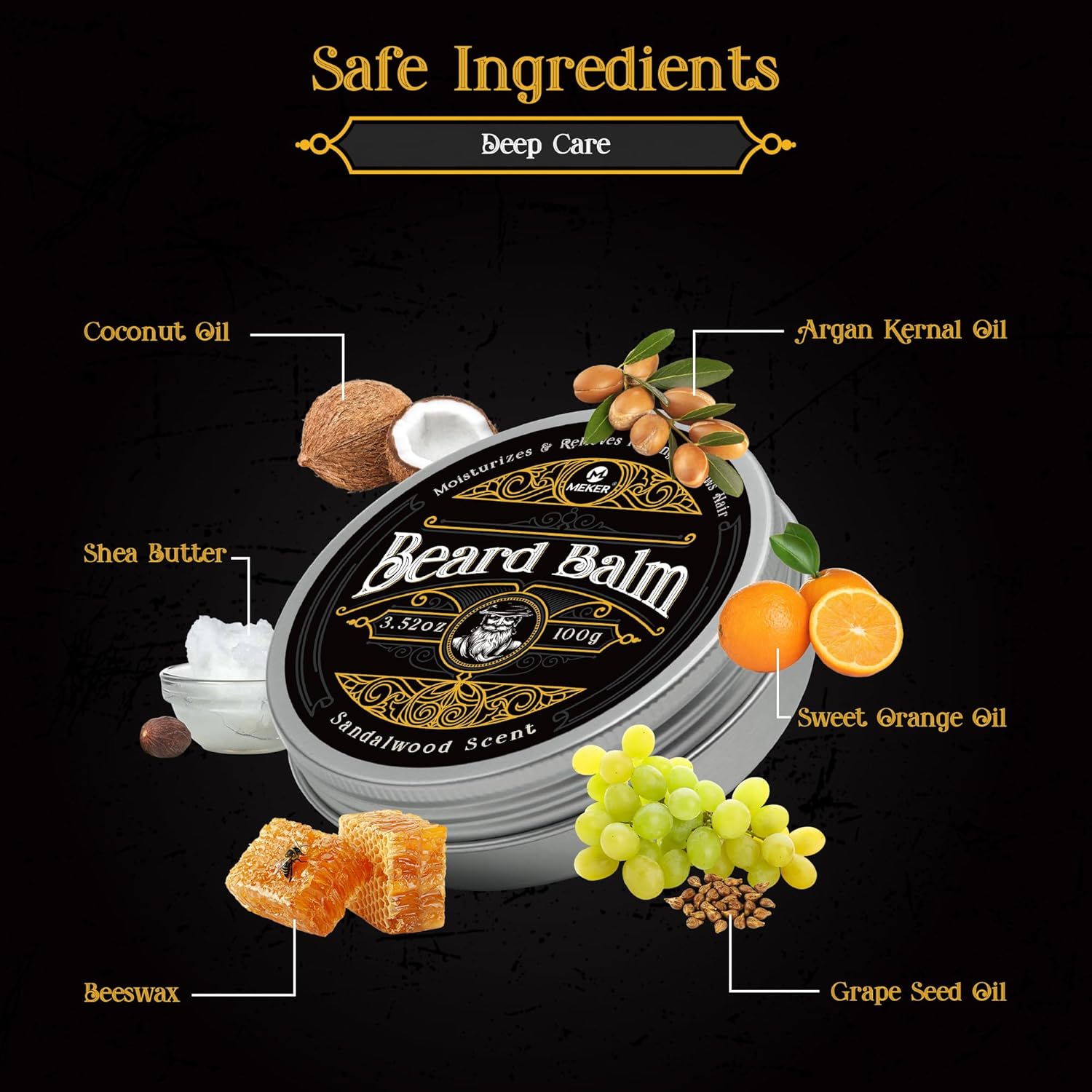 MEKER Beard Balm, Beard Softening Leave-in Balm with Brush, All-Natural Anti-Itch, Organic Beard Conditioner for Softening, Stops Itch, Grows, 7.04 OZ