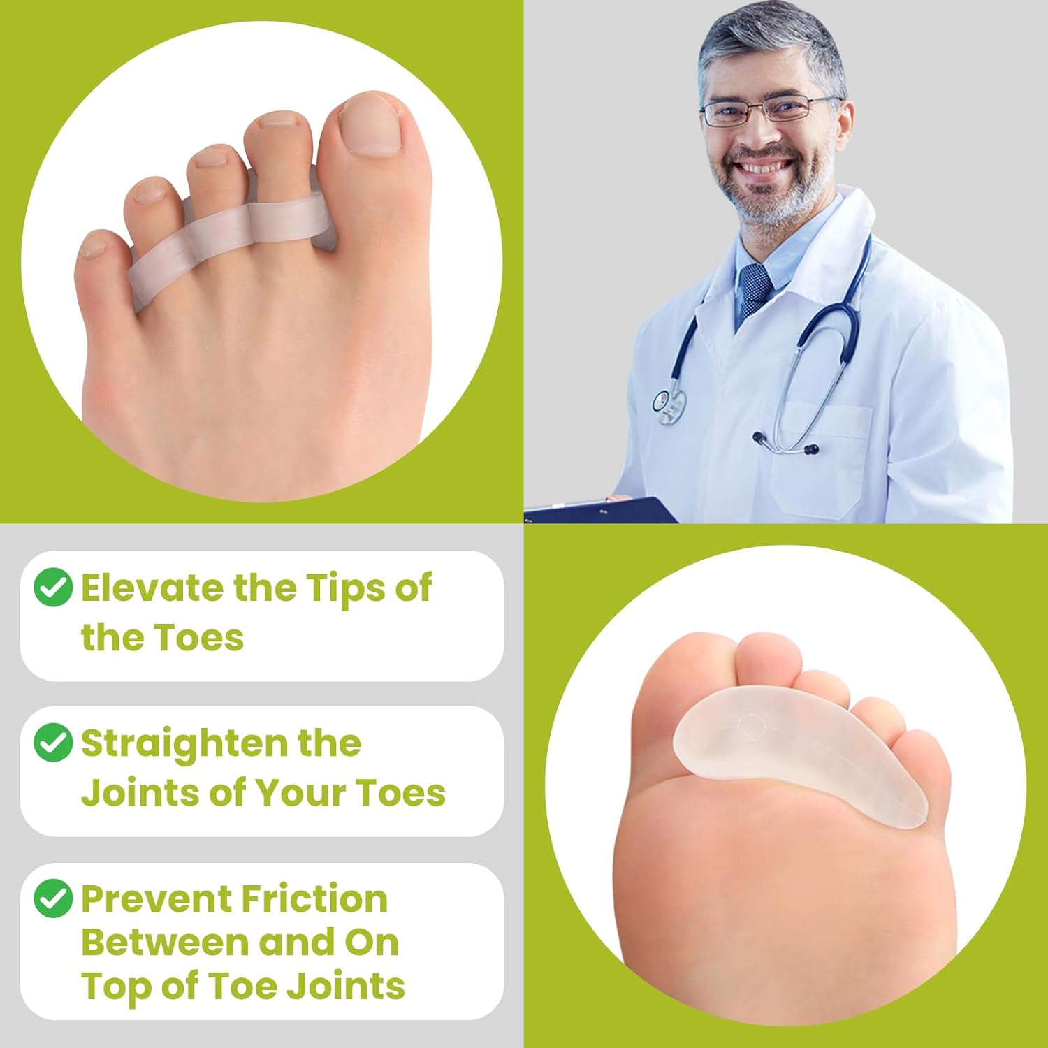 - Pain Relief with Gentle Pressure - Hammer toes can cause the second, third or fourth toe to bend or overlap uncomfortably, which can cause discomfort during movement, activity or friction. Hammertoe silicone provides cushioning and support for the toes, relieving toe pain. In addition, they help relieve pressure and pain caused by corns, calluses, injuries and more.