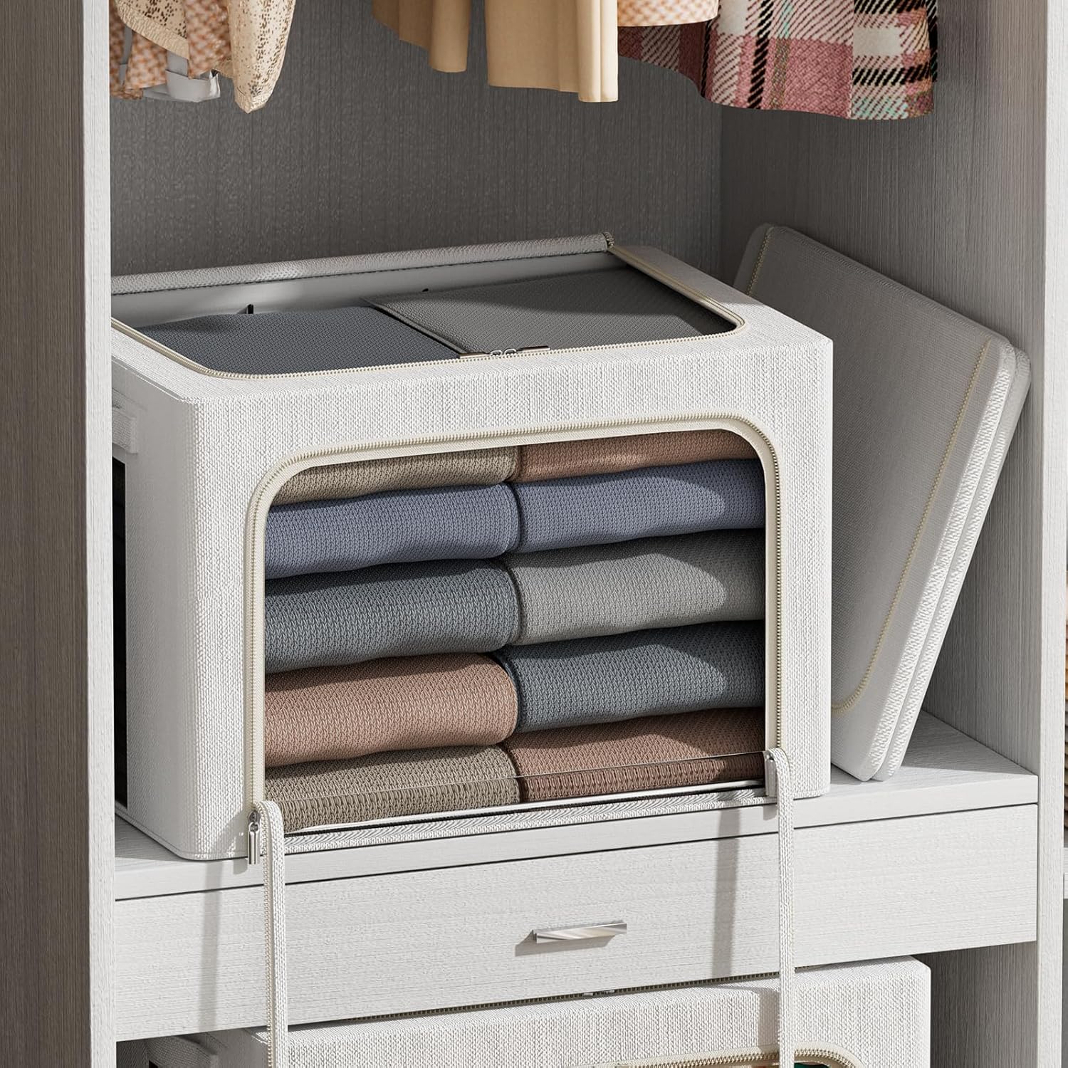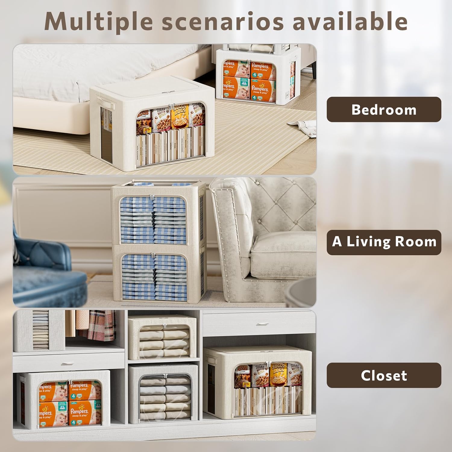 - Multipurpose -The Durable Handles handle with ergonomics design let you move more easily by a scientific approach, the fabric Storage bins perfect for storing clothing, linens, holiday decorations, quilts, blankets, seasonal clothing, etc. can be for use in bedrooms, closets, study rooms, office, put over the cabinet, or under the bed.