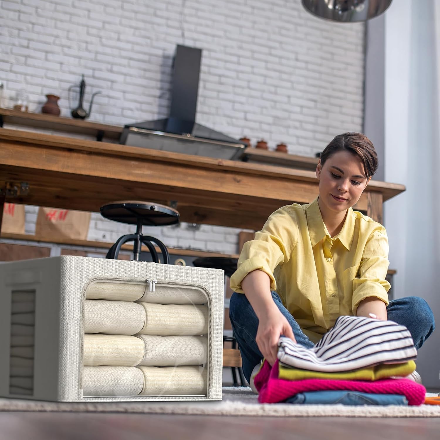 - Multipurpose -The Durable Handles handle with ergonomics design let you move more easily by a scientific approach, the fabric Storage bins perfect for storing clothing, linens, holiday decorations, quilts, blankets, seasonal clothing, etc. can be for use in bedrooms, closets, study rooms, office, put over the cabinet, or under the bed.