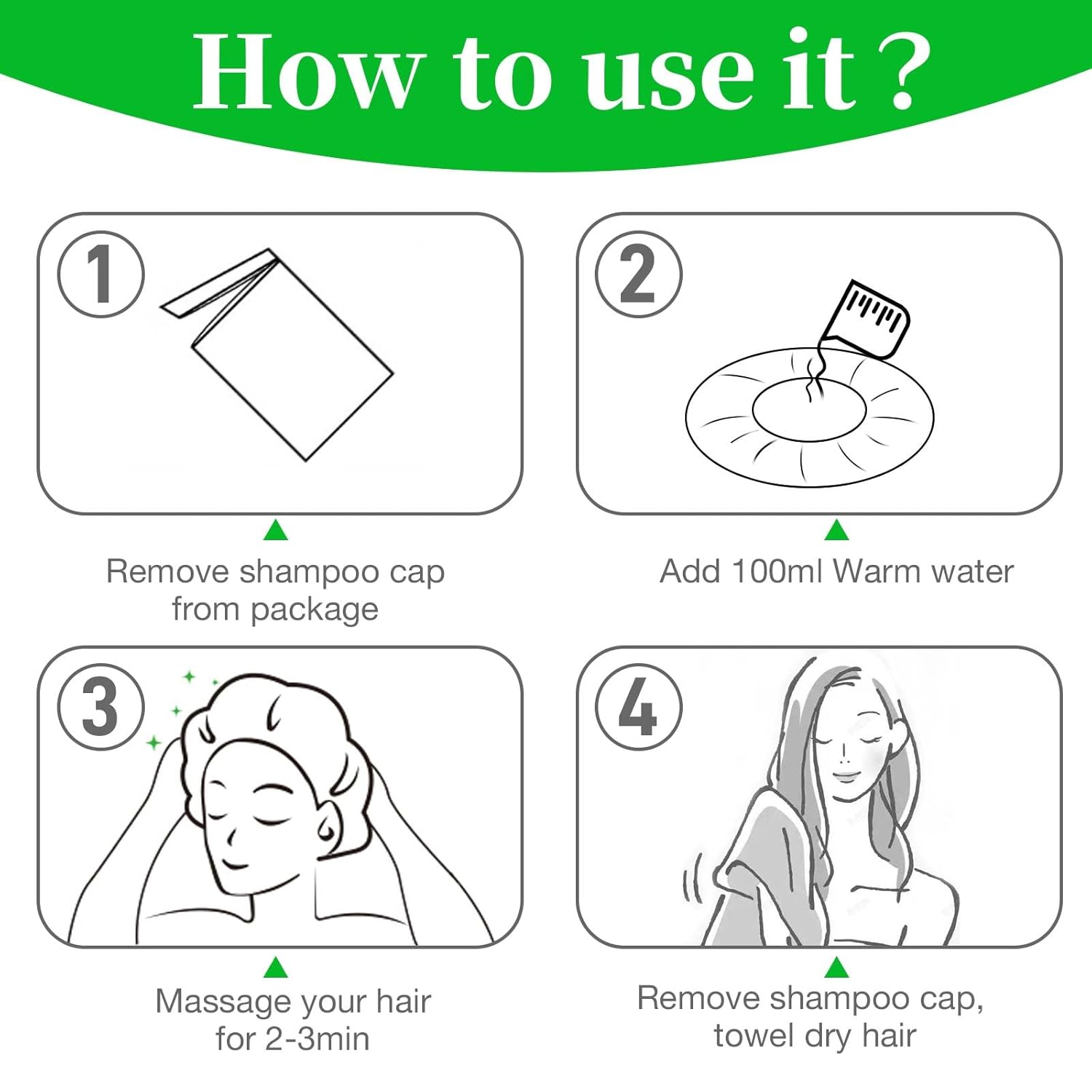 - Make life easier: simply get the cap damp, massaged with the shampoo cap on for three minutes and then towel dried, no rinsing needed, making someone with limited mobility can clean their hair independently and with ease