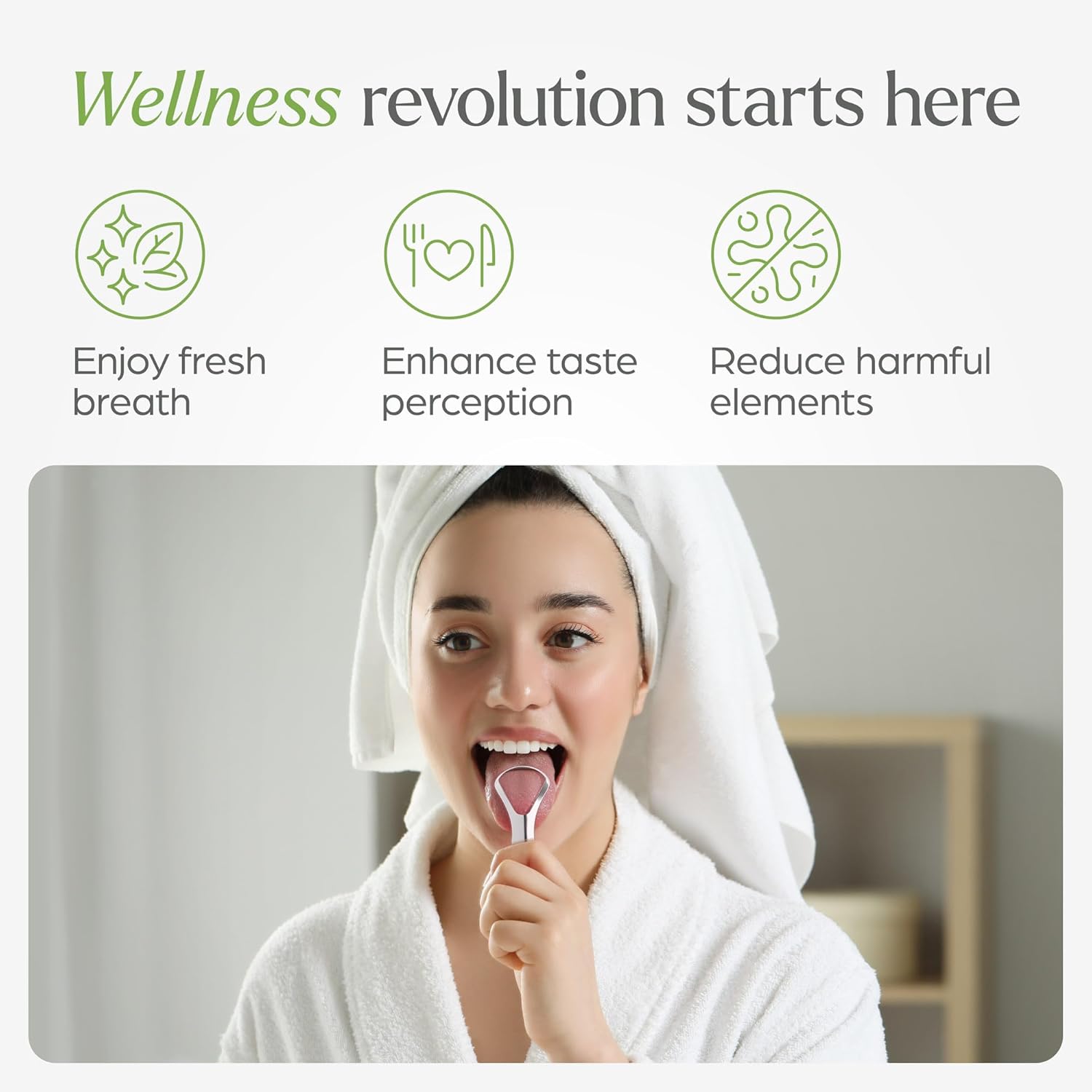 - Elegant and Accessible Bamboo Stand: Our bamboo stand ensures your tongue scraper is always within reach and well-ventilated, adding a decorative touch to your bathroom. Practical and stylish for daily use.