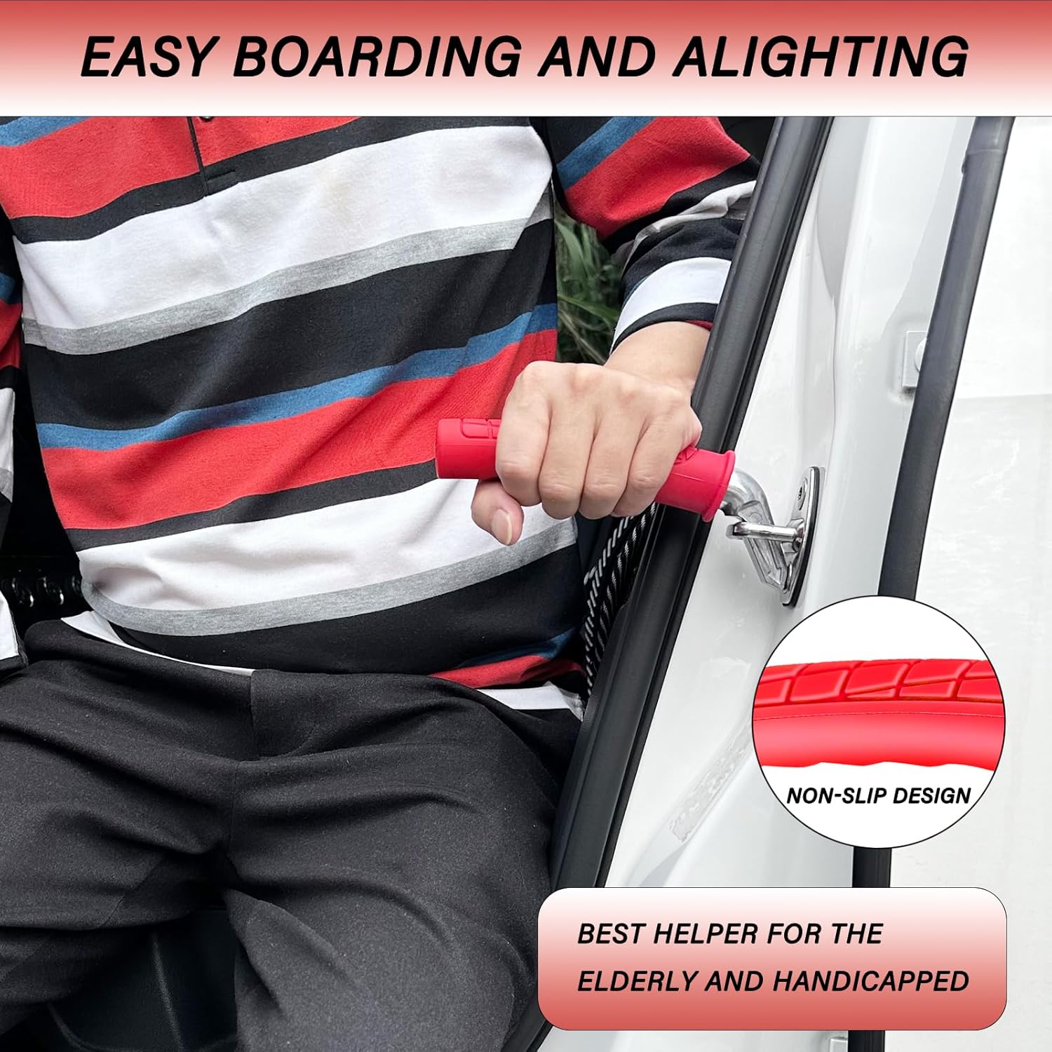 - 【EASY DISEMBARKATION】The car door handle provides strong support and stability, allowing you to get in and out of the car independently and safely. getting in and out of the car is easy without the assistance of a caregiver. this support handle is made of solid, high-quality steel and can hold up to 450 pounds.