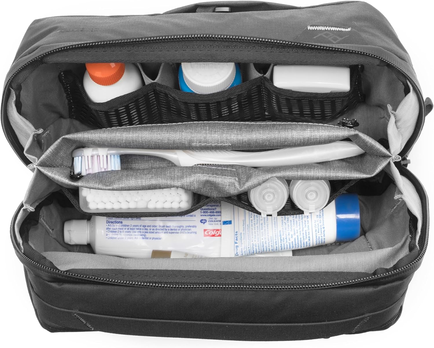 - THE ULTIMATE TRAVEL COMPANION: This standing toiletry bag sits upright on the counter or hangs neatly with a stowable aluminum hook. A burly #8 UltraZip opens wide for full access and resists abrasion for decades of reliable use.