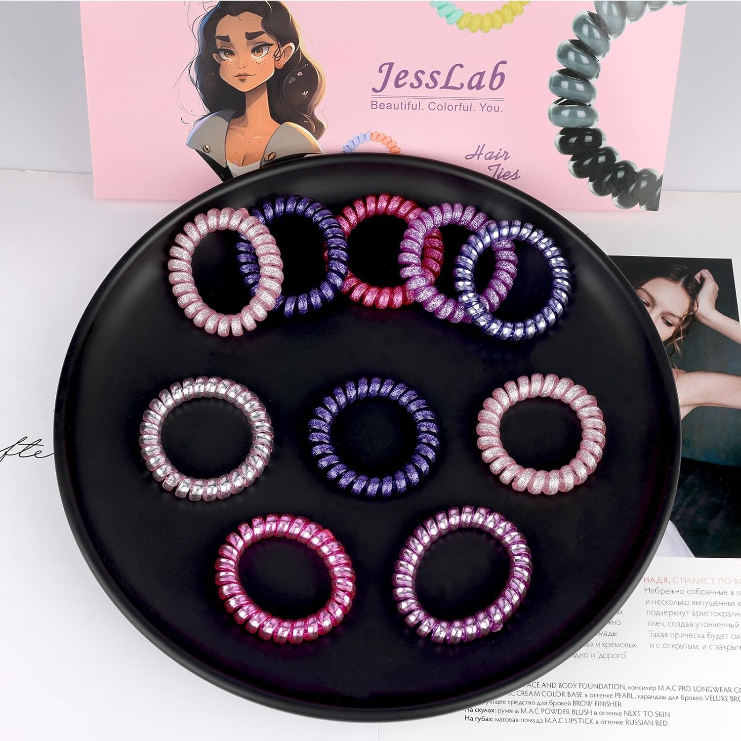 JessLab Spiral Hair Ties for Women, 10-Pack Traceless No-Damage Ponytail Holders, Coils Hair Bands for Girls, Assorted Colors