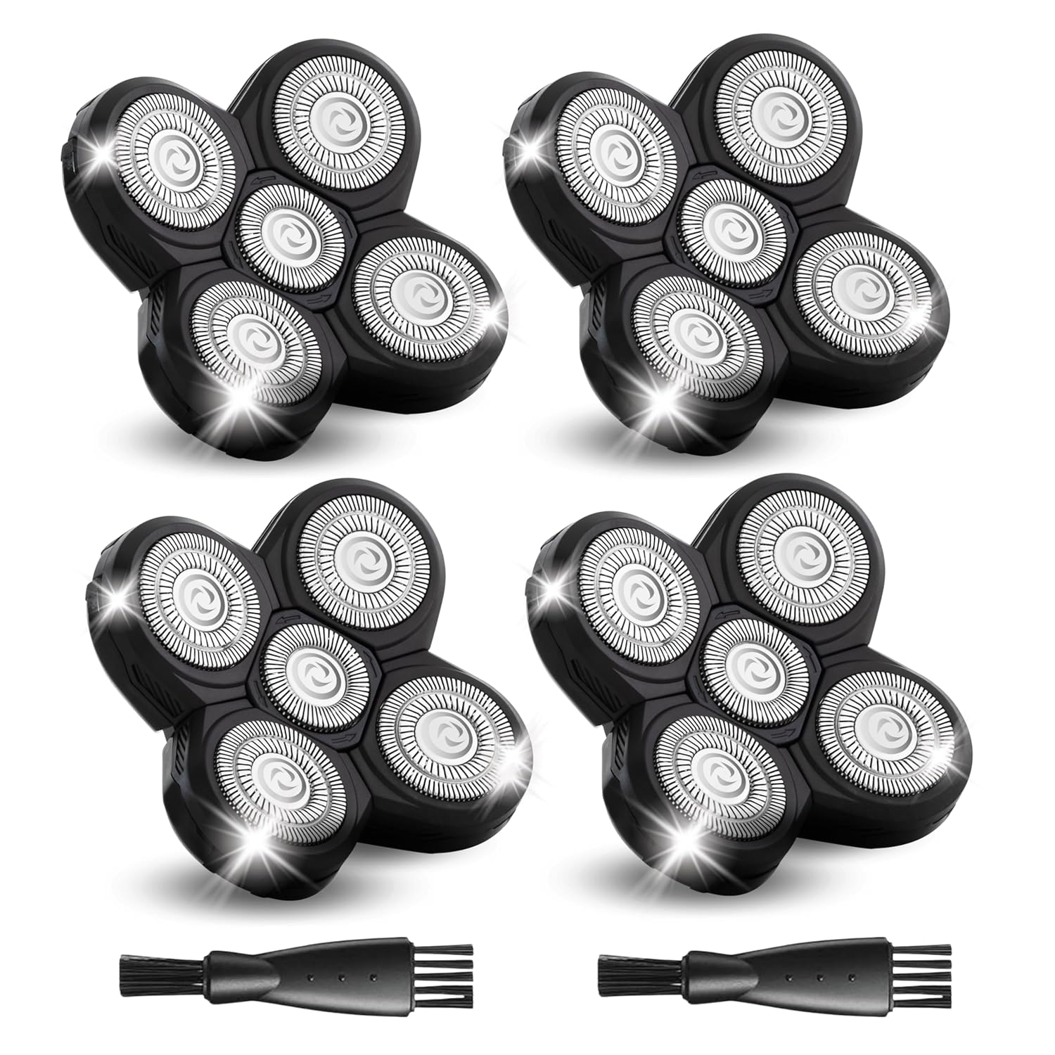 4 Pack Shaver Replacement Blades Compatible with Freedom Head Electric Razor Shaving, 5 Blades Shaver Replacement Heads for Head Shavers for Bald Men, Replacement Blades for Head Shaver Kit, 2 Brush
