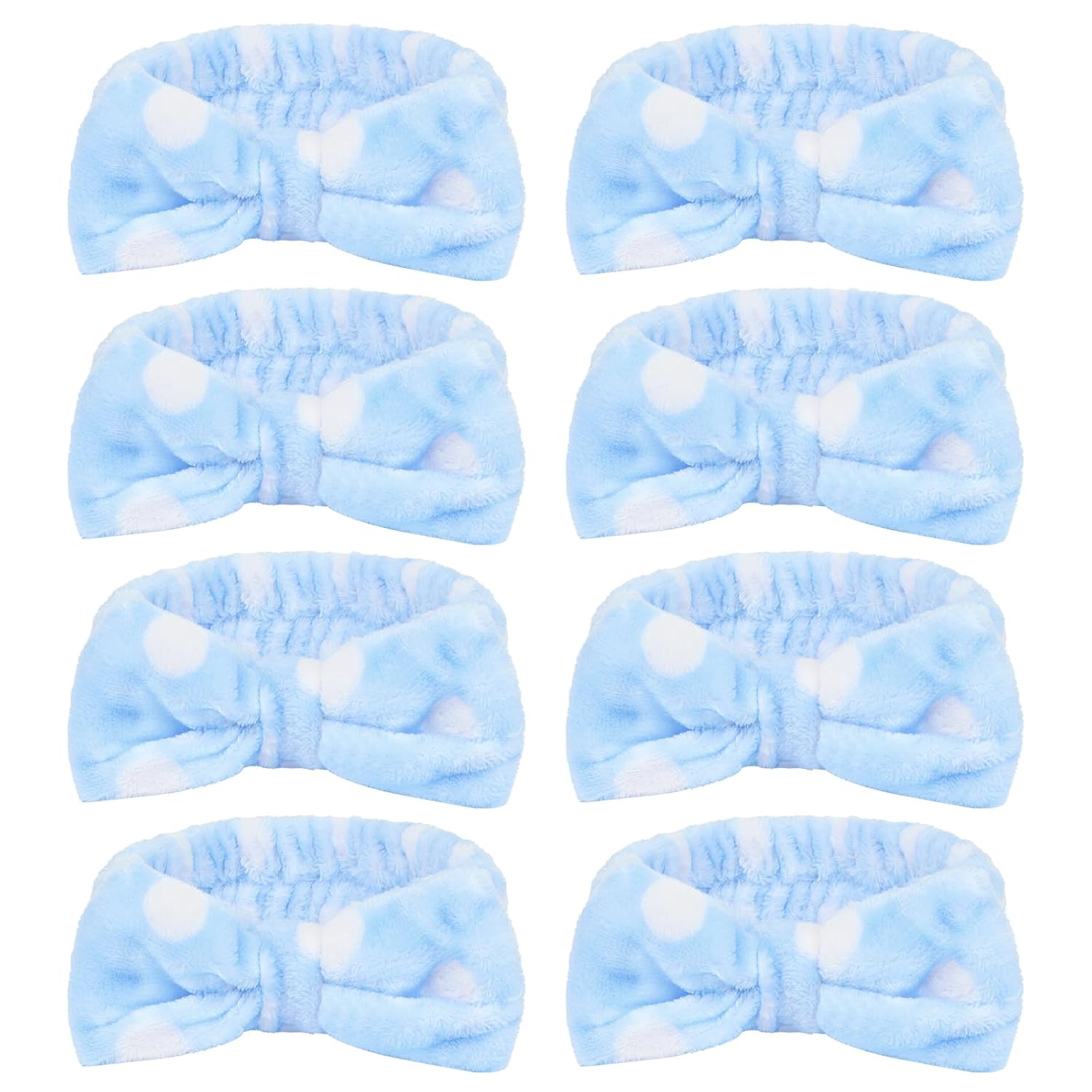 CIEHER 8 Pcs Spa Headbands for Women & Girls, Blue Dot Spa Headbands for Bachelorette Party, Sleep Party & Face Wash, Bachelorette Gifts for Bridesmaids