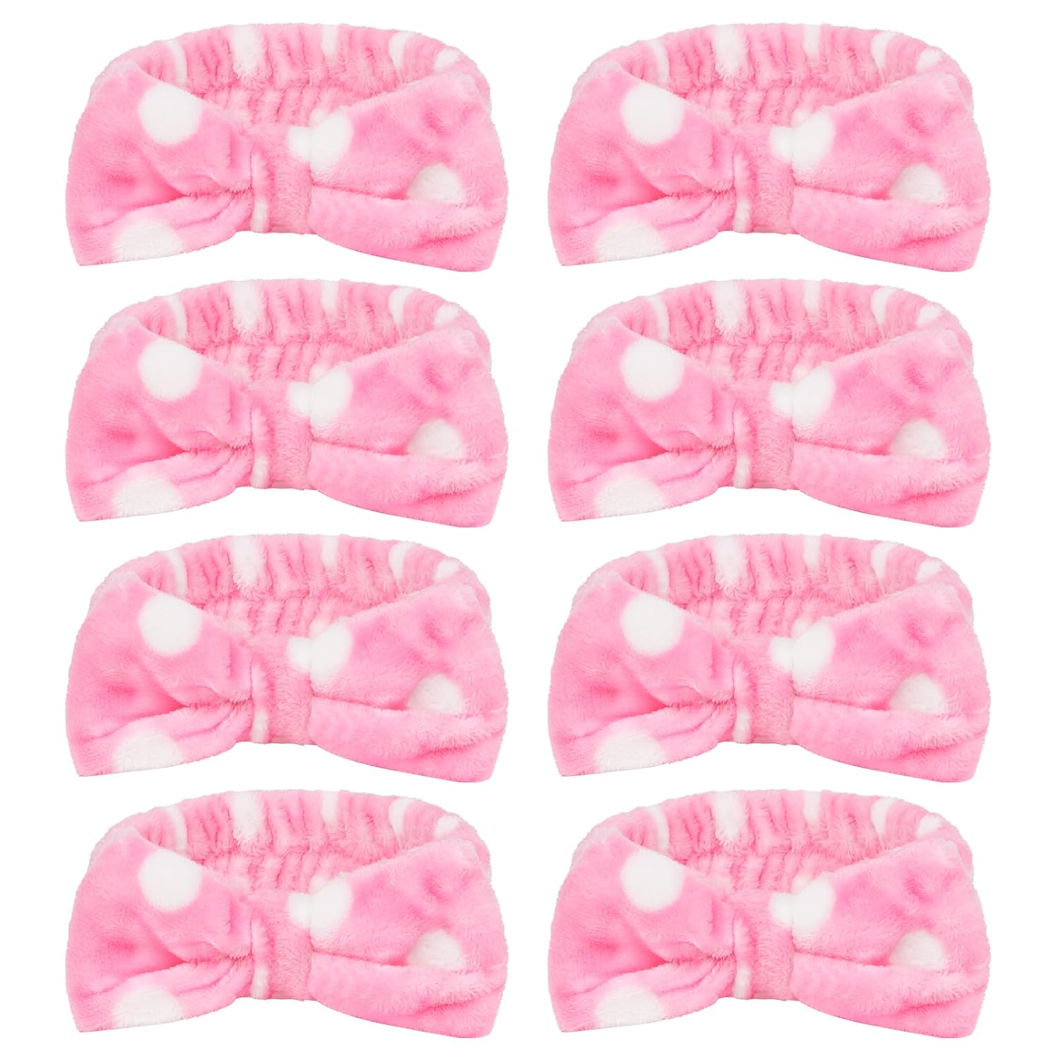 CIEHER 8 Pcs Spa Headbands for Women & Girls - Pink Dot Spa Headbands for Bachelorette Party, Sleep Party, Skincare, Makeup & Face Wash Use