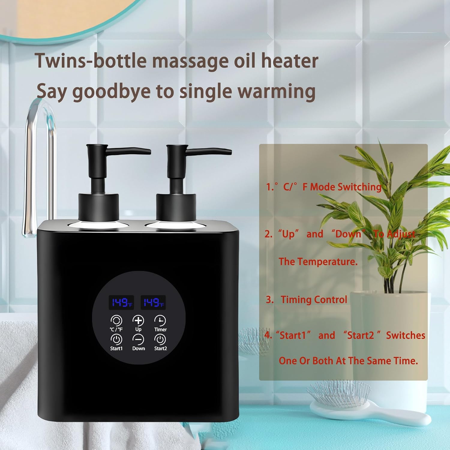 - ✔️NEW DUAL BOTTLE HEATING MODE: The JOSBES Dual Bottle Massage Oil Warmer is a completely new design concept. The dual-bottle, dual-control mode meets different heating needs, allowing essential oils, body creams and other lotions to be heated at a variety of temperatures for use.