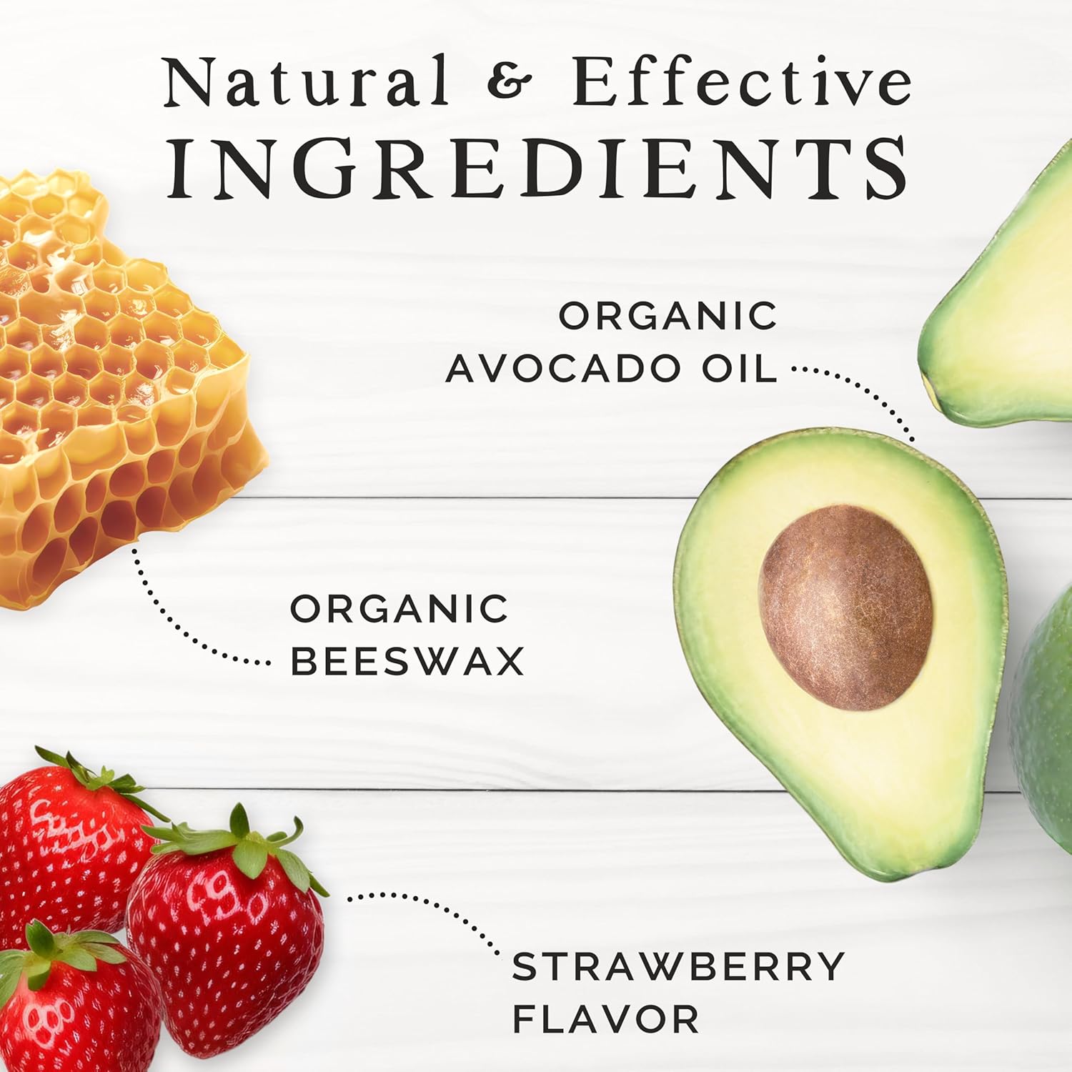 Natural Lip Balm - Organic & Natural Ingredients - Beeswax Based Moisturizing Lip Care Chapstick for Chapped Lips - Great Gift Idea - Farm & Bee - 0.15oz (Pack of 4 - Strawberry)
