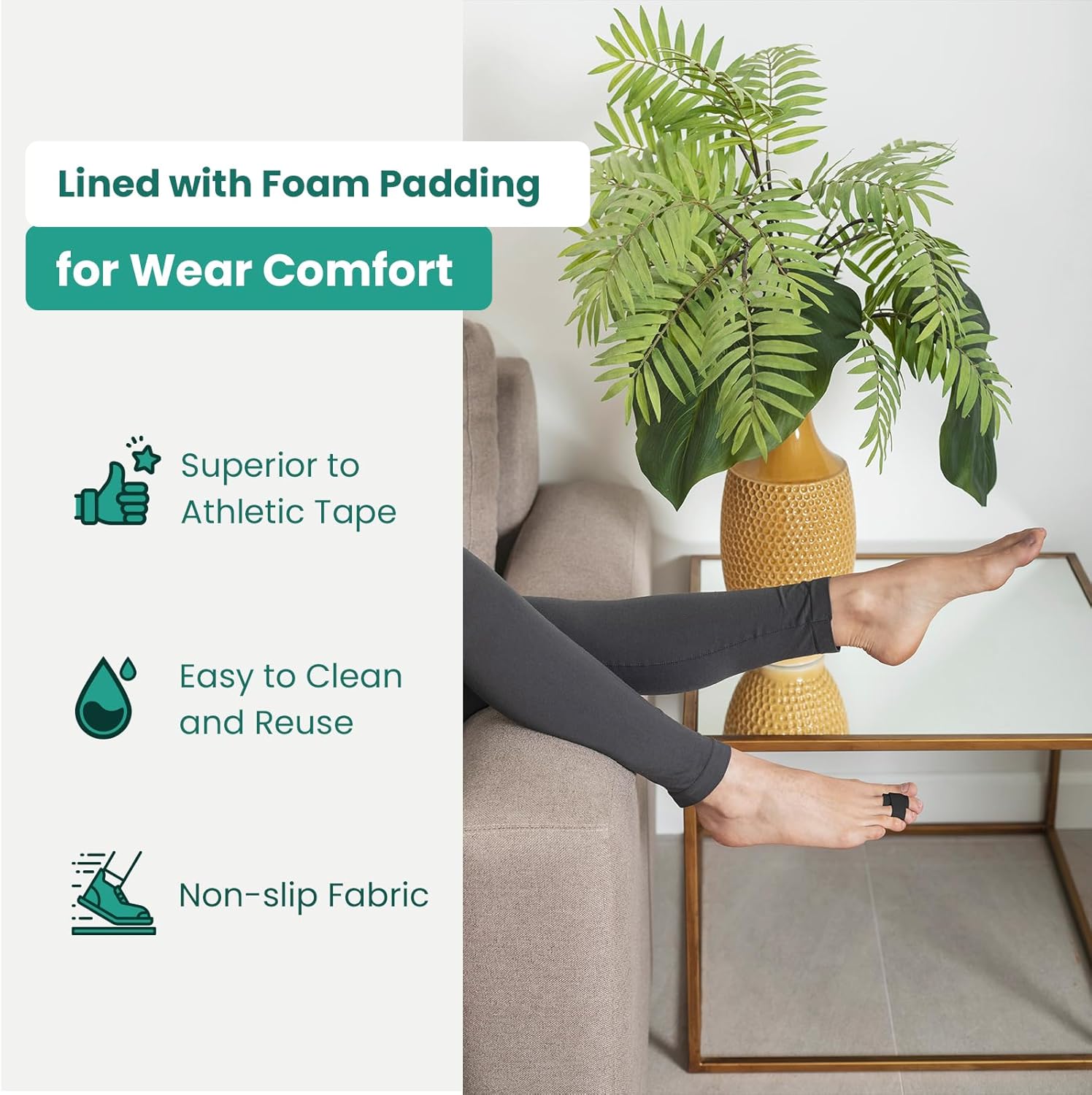 - Washable & Reusable - Includes 8 cushioned latex fabric toe wraps (Black) made of non-slip fabric that is allergy-friendly. They are easy to clean and reuse