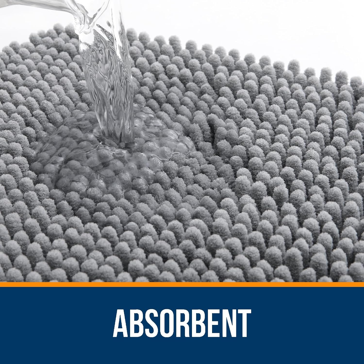 OLANLY Bathroom Rugs 59x35, Extra Soft Absorbent Chenille Bath Rugs, Rubber Backing Quick Dry, Machine Washable Bath Mats for Bathroom Floor, Tub and Shower, Home Decor Accessories, Grey