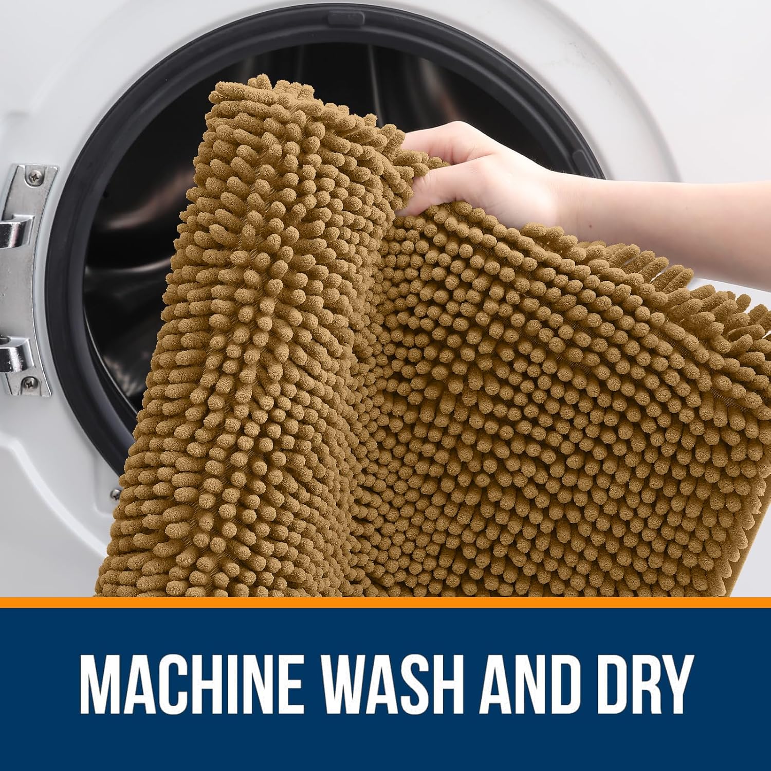 OLANLY Bathroom Rugs 36x24, Extra Soft Absorbent Chenille Bath Rugs, Rubber Backing Quick Dry, Machine Washable Bath Mats for Bathroom Floor, Tub and Shower, Home Decor Accessories, Ochre