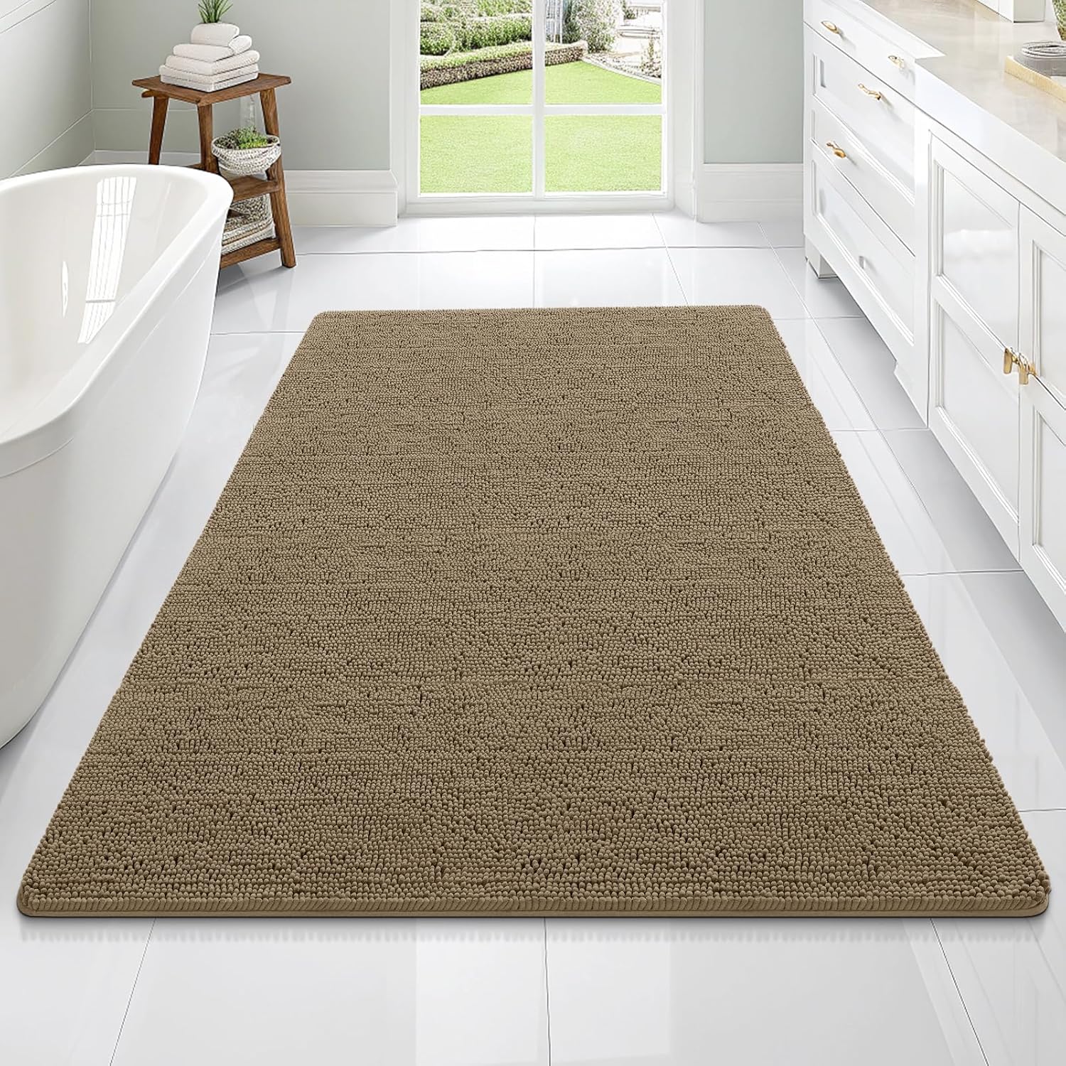 OLANLY Bathroom Rugs 70x46, Extra Soft Absorbent Chenille Bath Rugs, Rubber Backing Quick Dry, Machine Washable Bath Mats for Bathroom Floor, Tub and Shower, Home Decor Accessories, Tan