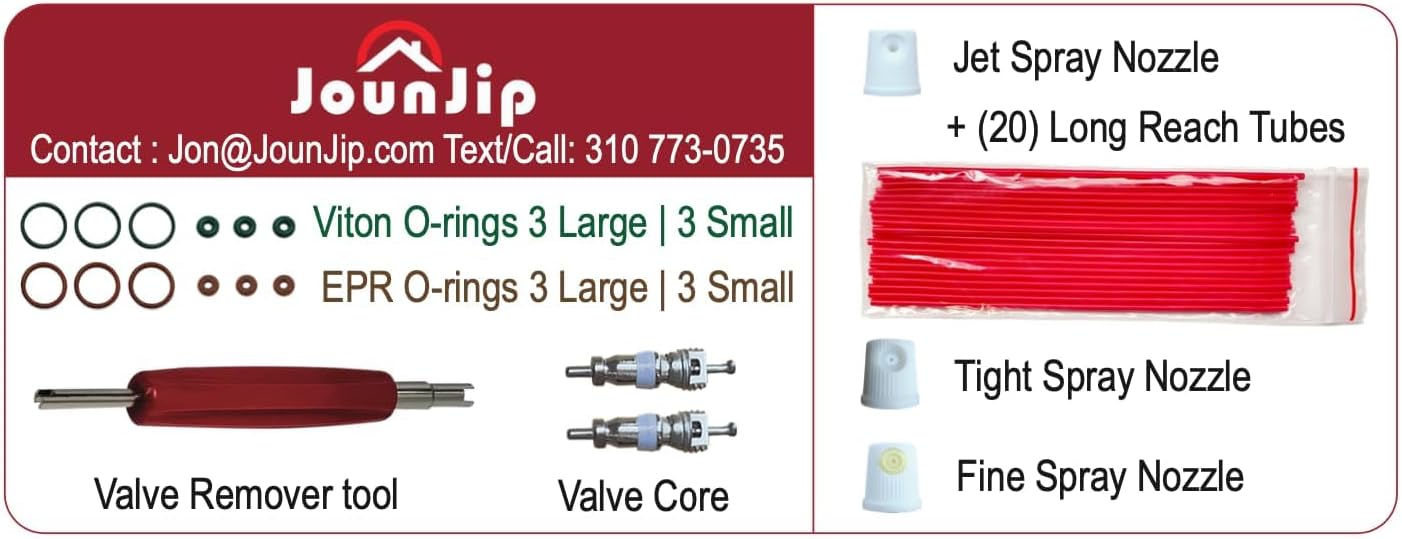 - Safe Operation: Pressure Relief Valve prevents over-pressurization up to 90PSI. Includes 3 Tips - Tight Spray, Fine Spray (Yellow), and Jet Spray Nozzles, 20 Extension Tubes, 2 Replacement Air Valve Cores and O-ring Replacement Seals