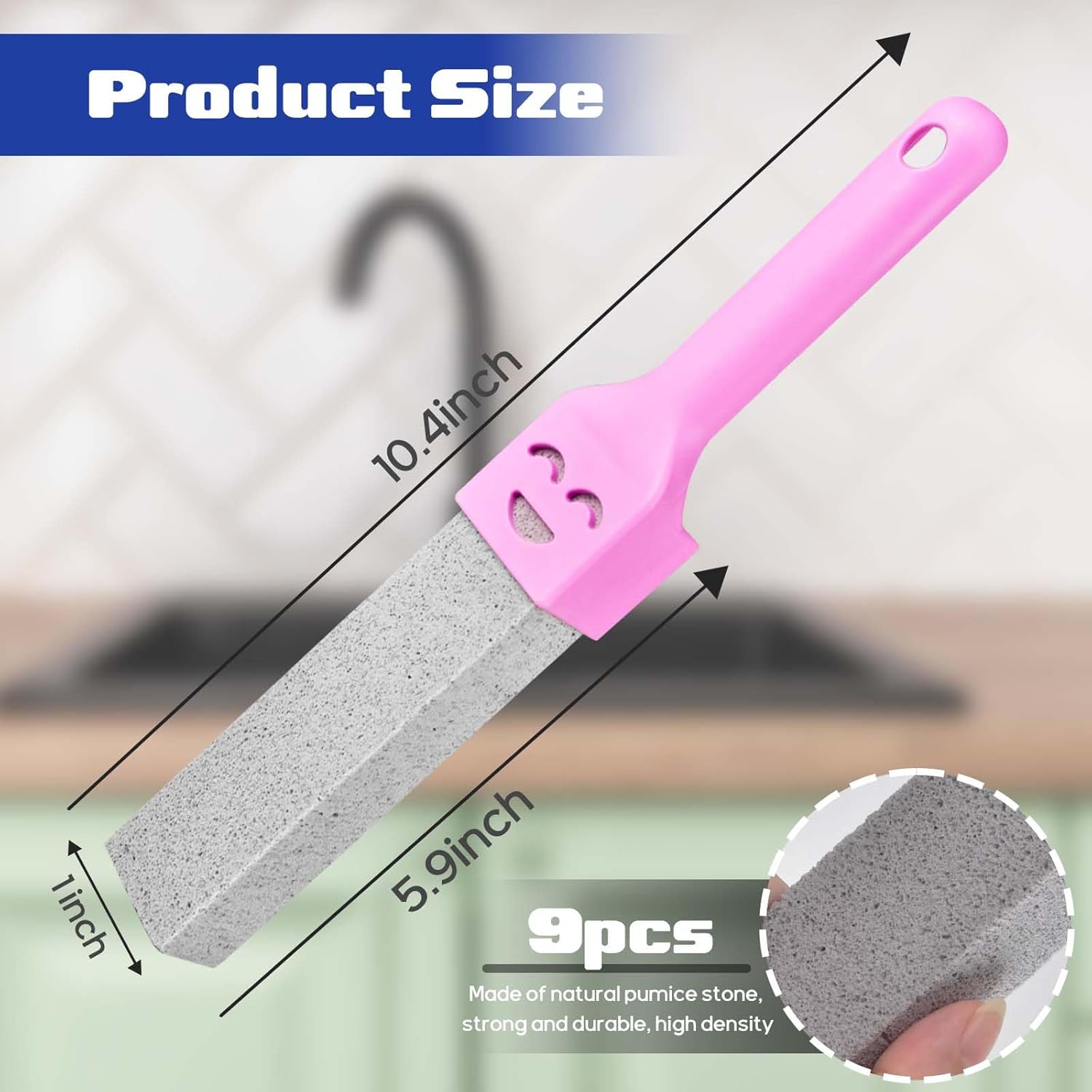 - Applicable Occasions: Pumice stone with handle is used in toilets to clean calcium deposits, limescale and hard water rings on toilets, sinks, bathroom tiles and other ceramic surfaces. It can also be used to remove rust and grease from grills and ovens