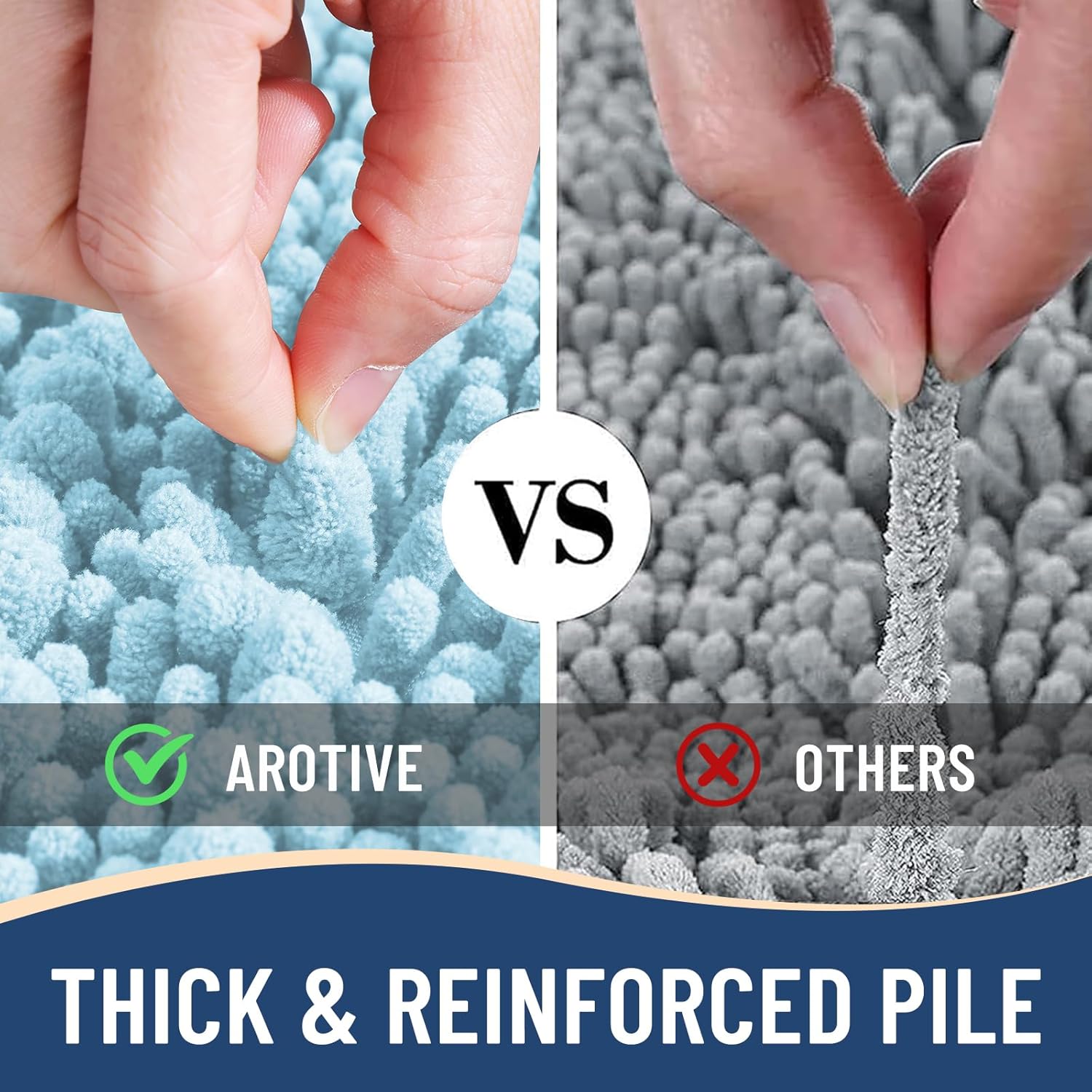 Arotive Luxury Chenille Bathroom Rug Mat, Extra Soft Thick Absorbent Shaggy Bath Rugs, Non-Slip Machine Wash Dry, Plush Bath Mats for Bathroom, Shower and Tub, 47x24, Blue
