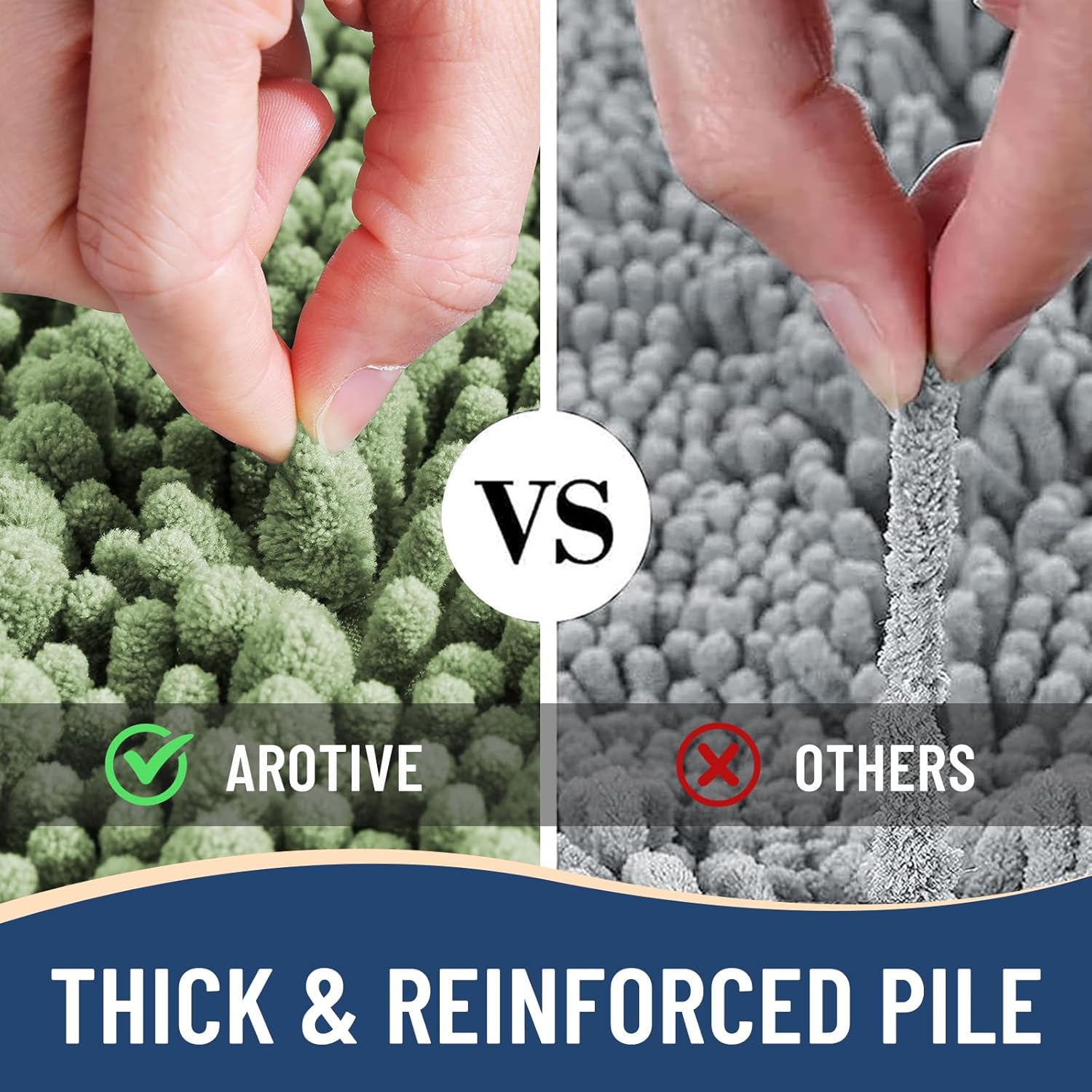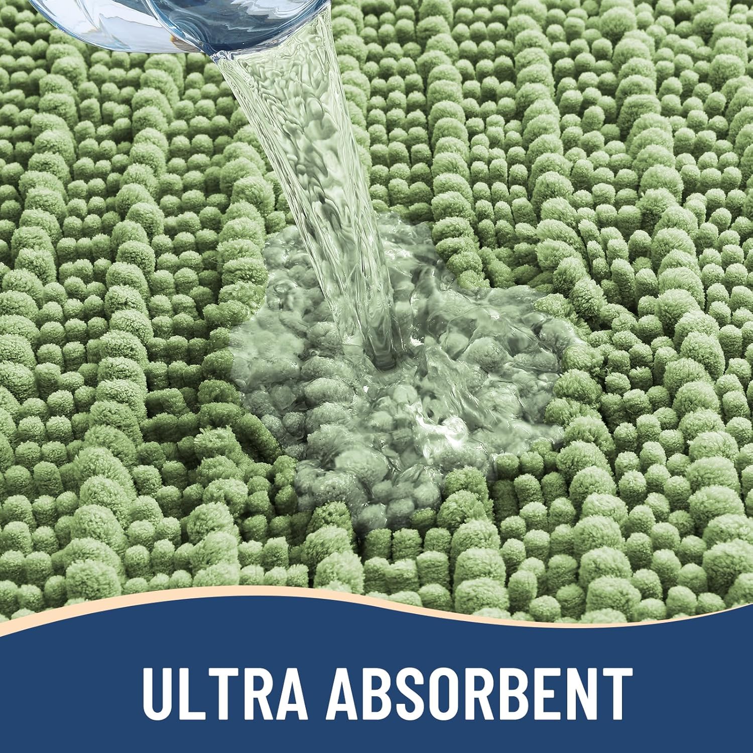 Arotive Luxury Chenille Bathroom Rug Mat, Extra Soft Thick Absorbent Shaggy Bath Rugs, Non-Slip Machine Wash Dry, Plush Bath Mats for Bathroom, Shower and Tub, 54x24, Sage Green
