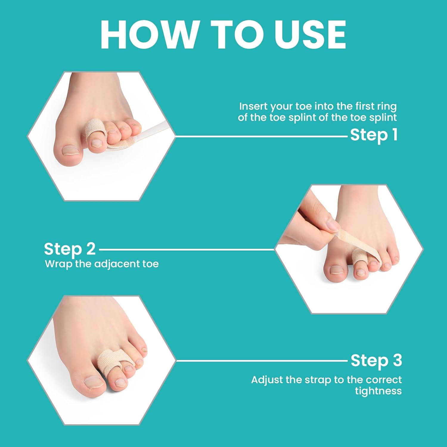 - Toe protection: The Promifun Toe Wrap is a thin, flexible sheet that wraps around a hammer toe or broken toe and the toe beside it. Once you fasten the adhesive strip, the wrap stays in place and acts as a toe straightener splint, flattening your toe and correcting its alignment. Unlike a rigid splint, our wrap toe straighteners allow you to still move with ease, so you can complete all of your daily activities.