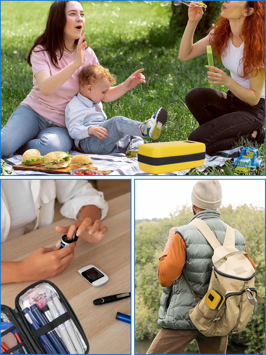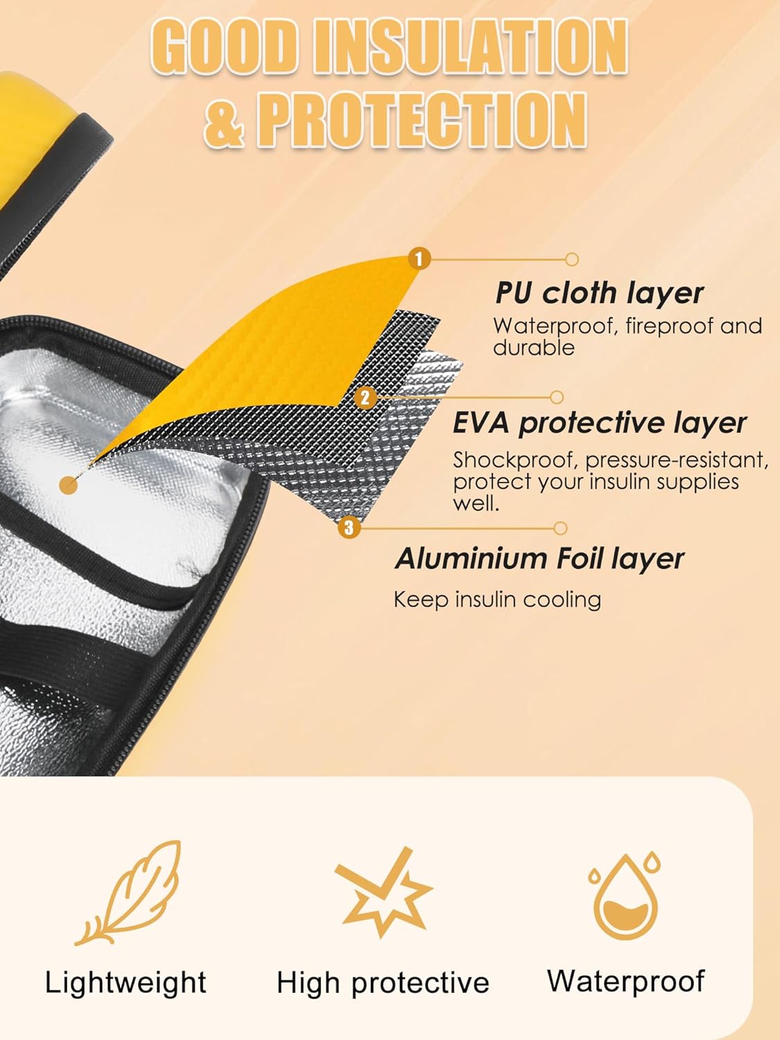 - Medical Cooler Travel Bag - This insulin travel case tsa approved is large in size 8.2 x 4.2 x 2.9 in for easy-carry. Ideal medicine travel cooler tsa approved for carrying Insulin pen, insulin syringe, diabetic needles and syringes, paper towel, consumables, or other simple accessories in a safe environment. This temperature display cooler medicine bag is a great choice for commuting to work, outdoor camping or short trips.