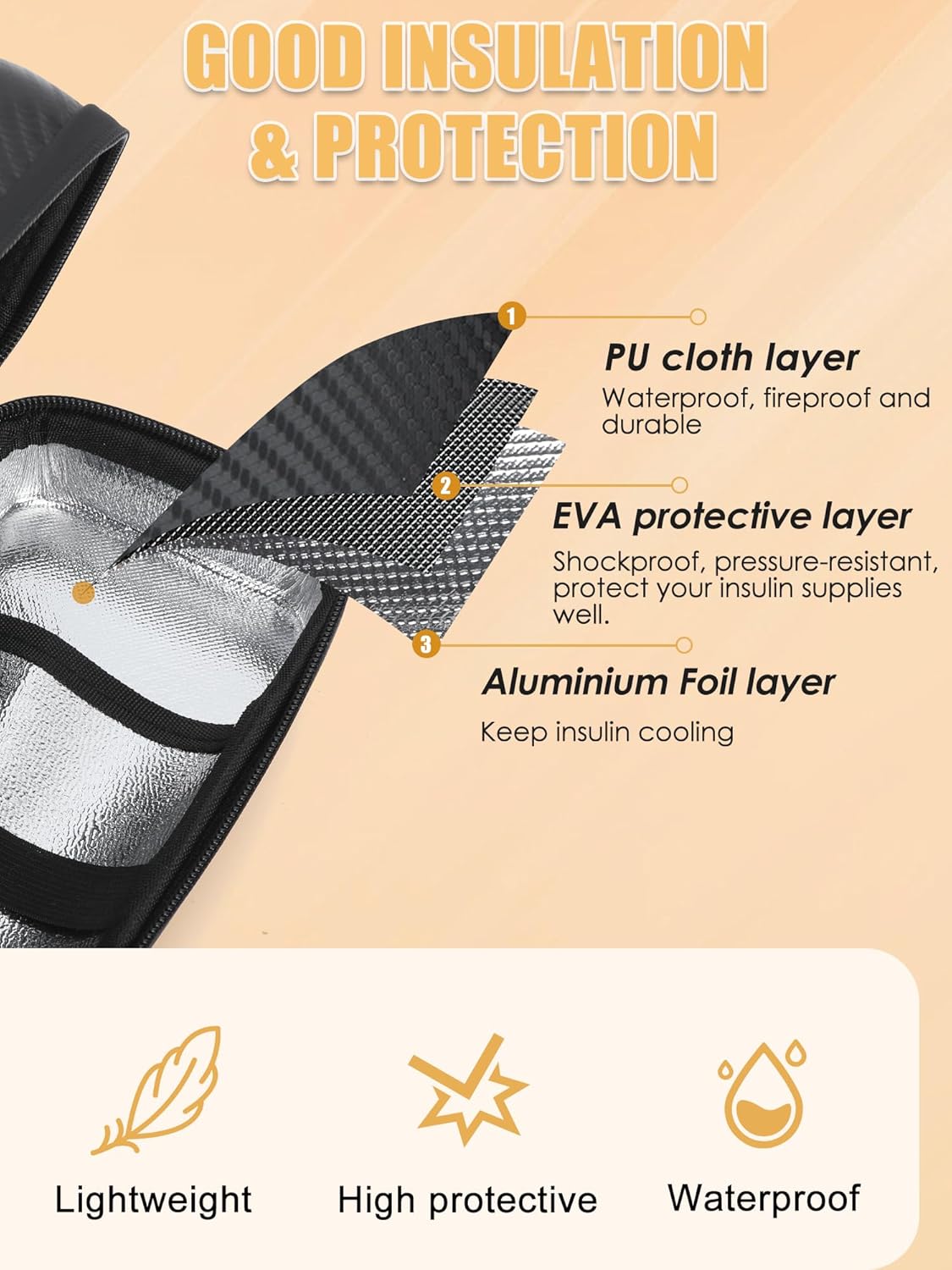 - Insulin Ice Packs for Long-Lasting Cooling - Included with this diabetic insulin cooler travel case are 2 TSA approved gel ice packs that maintain the optimal temperature for 6-10 hours. Simply freeze the Insulin ice packs for 8-12 hours before use, making it ideal for fly travel, road trips, cycling, or daily life.