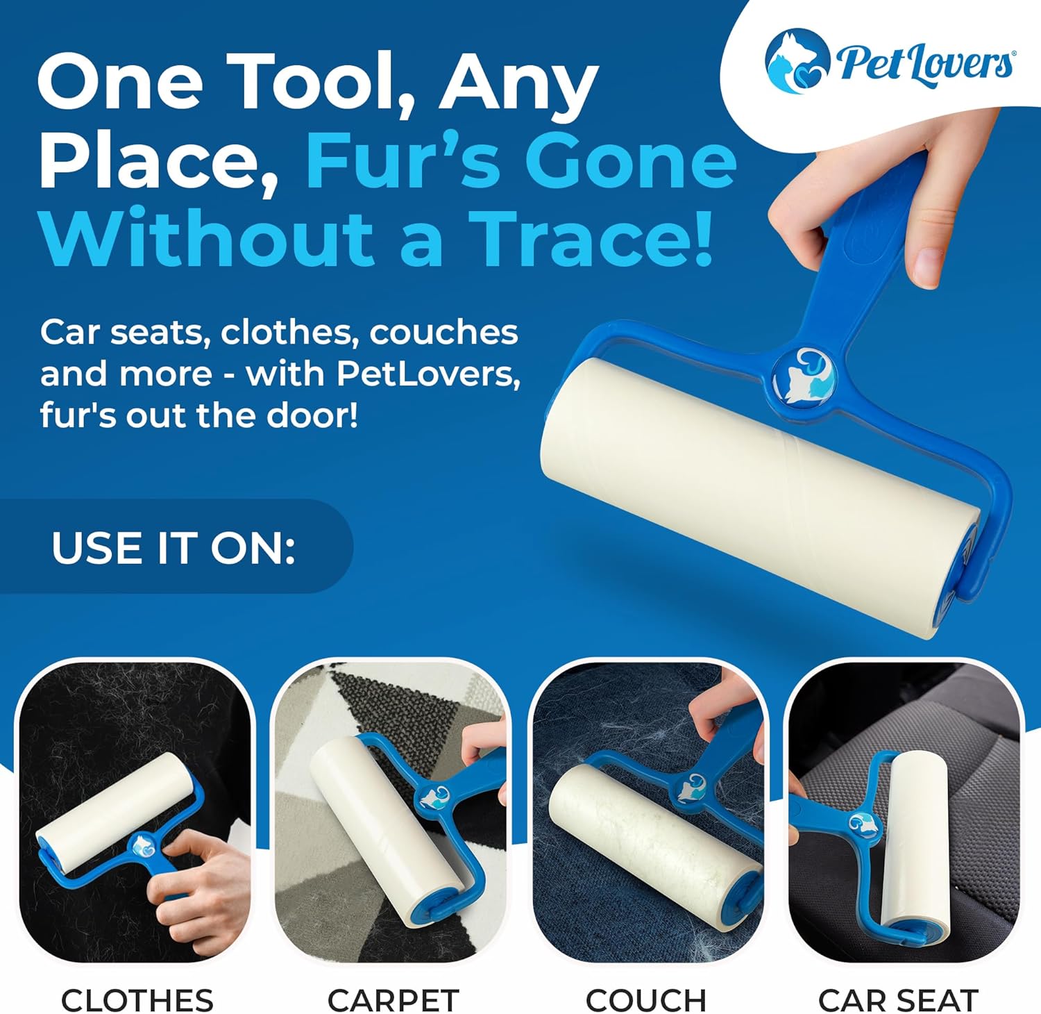 - With PetLovers extra sticky adhesive, your lint roller doubles as a grooming tool that noticeably removes more hair, dust, and lint from your pets, furniture, clothing, and carpet