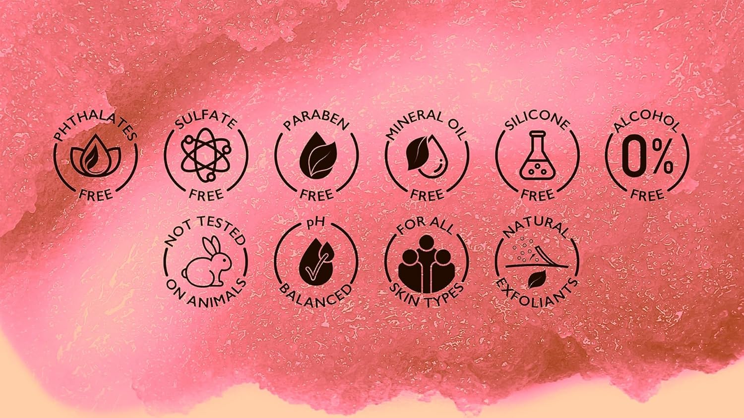 - Clean Beauty: We prioritize your well-being and the environment. Our body scrub is free from harsh chemicals, parabens, and sulfates. We are committed to using only cruelty-free and clean ingredients, like natural exfoliants that are biodegradable