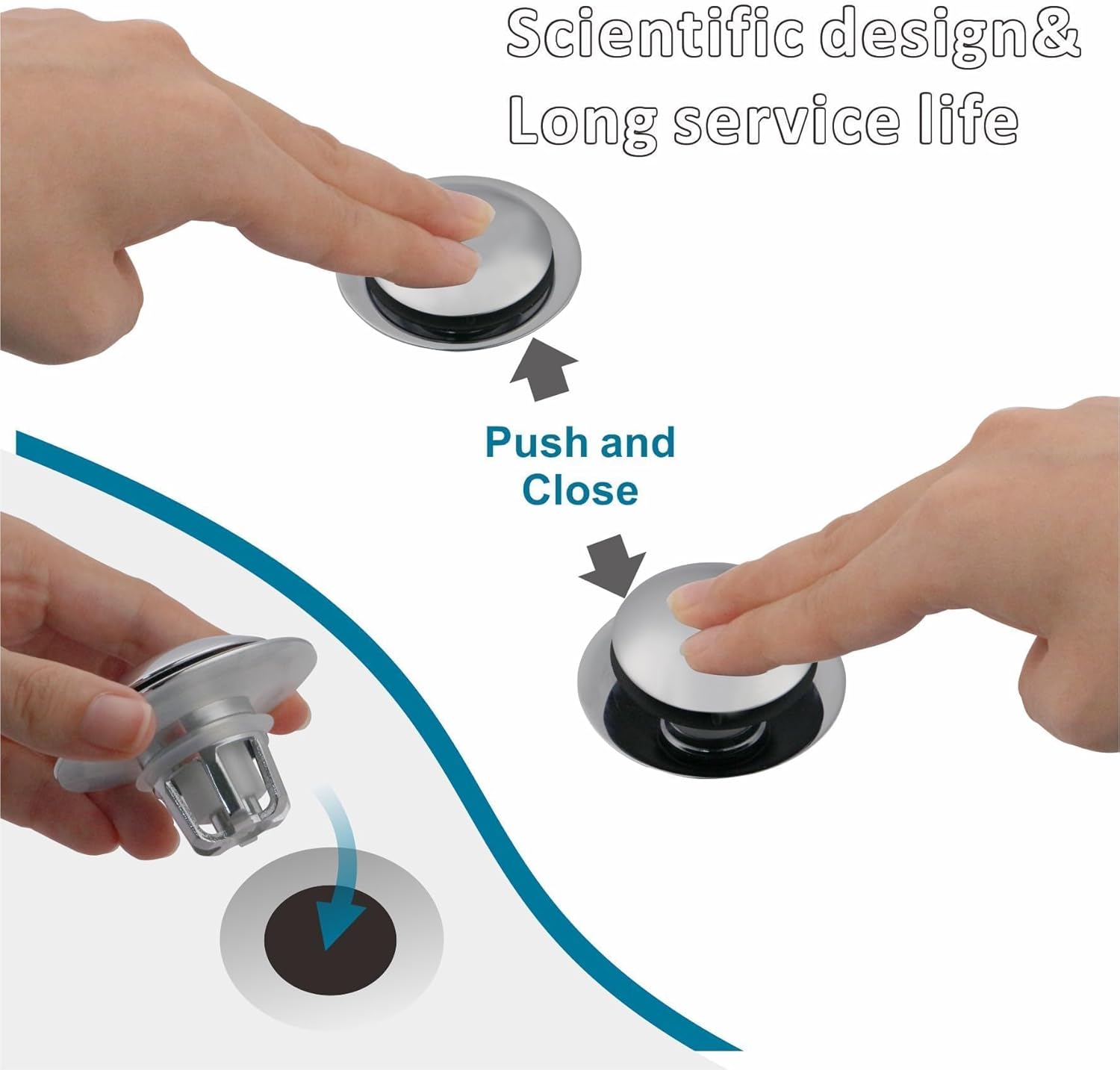 - Easy Installation & Operation: Remove your old basin sink plug and insert the bathroom sink stopper replacement effortlessly. Press once for water drainage and press again to retain water. No need for plumbers or additional tools! Simplify your sink maintenance with this user-friendly bathroom drain stopper