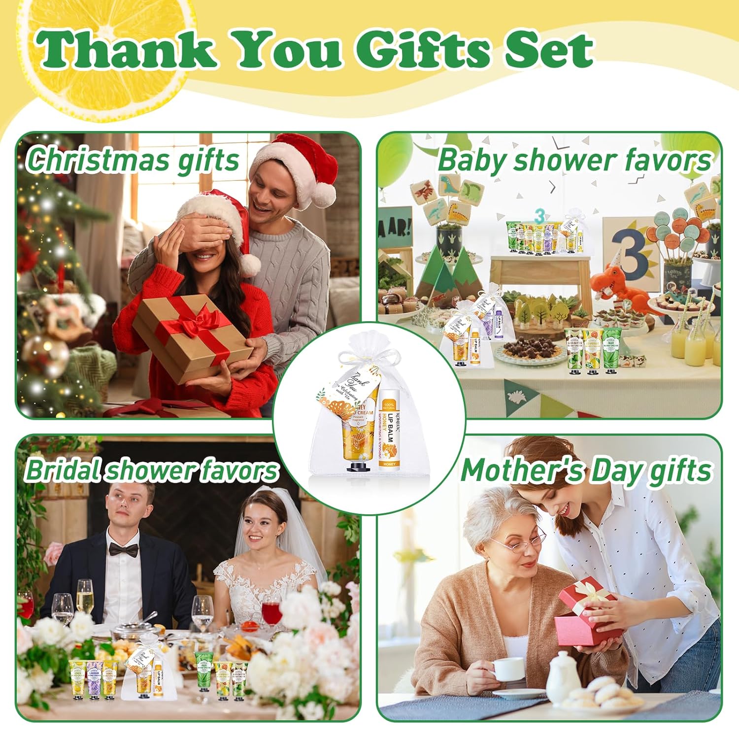 36 Pack Hand Cream Bulk and Lip Balm Bulk Sets, Stocking Stuffers for Women, Thank You Gifts and Christmas Gifts for Guests with Thank You Card Organza Bags, Birthday Gifts, Bulk Gifts, Small Gifts