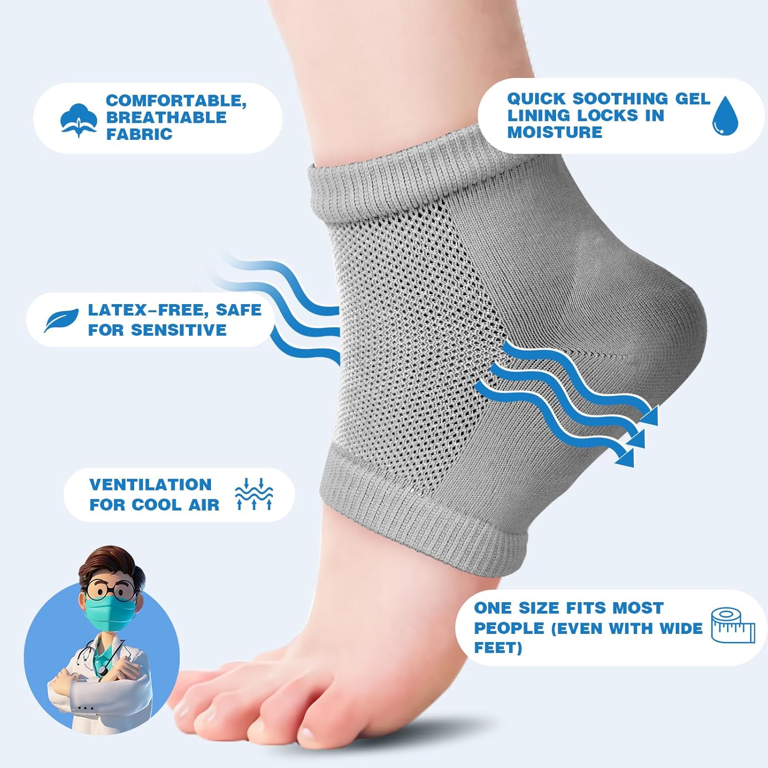 - 【SOFT FABRIC AND COMFORTABLE DESIGN】The crack repair socks are made with flexible cotton blend fabric. The toeless design and breathable material keep your feet cool and ventilated. The moisturizing gel heel socks also act as heel protectors, effectively reducing friction between shoes and feet, preventing heel blisters, and providing pain relief, thus preventing further cracking.