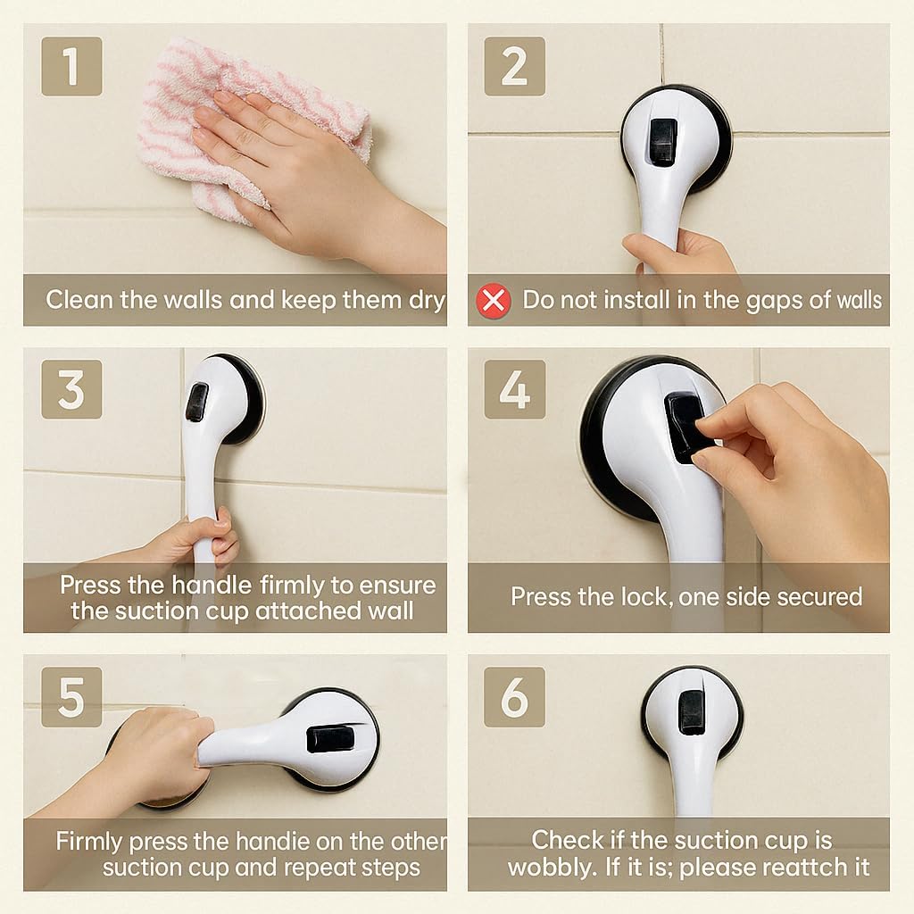 - IMPORTANT NOTE: CIVJET bathroom grab bars are designed exclusively for smooth, non-porous surfaces such as tiles, glass, acrylic, and metal. Avoid installation on porous surfaces or grout lines as these may cause the suction cup to lose its grip. These bars are intended to assist with partial weight support and should not bear full body weight