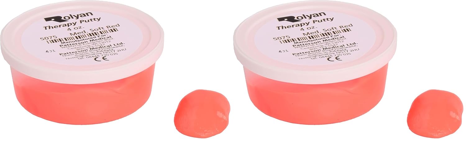 - Pliable therapy putty comes in easily-identifiable color coded progression system, medium soft difficulty red putty is the third of six resistance levels and provides a greater challenge than tan or yellow therapy putty