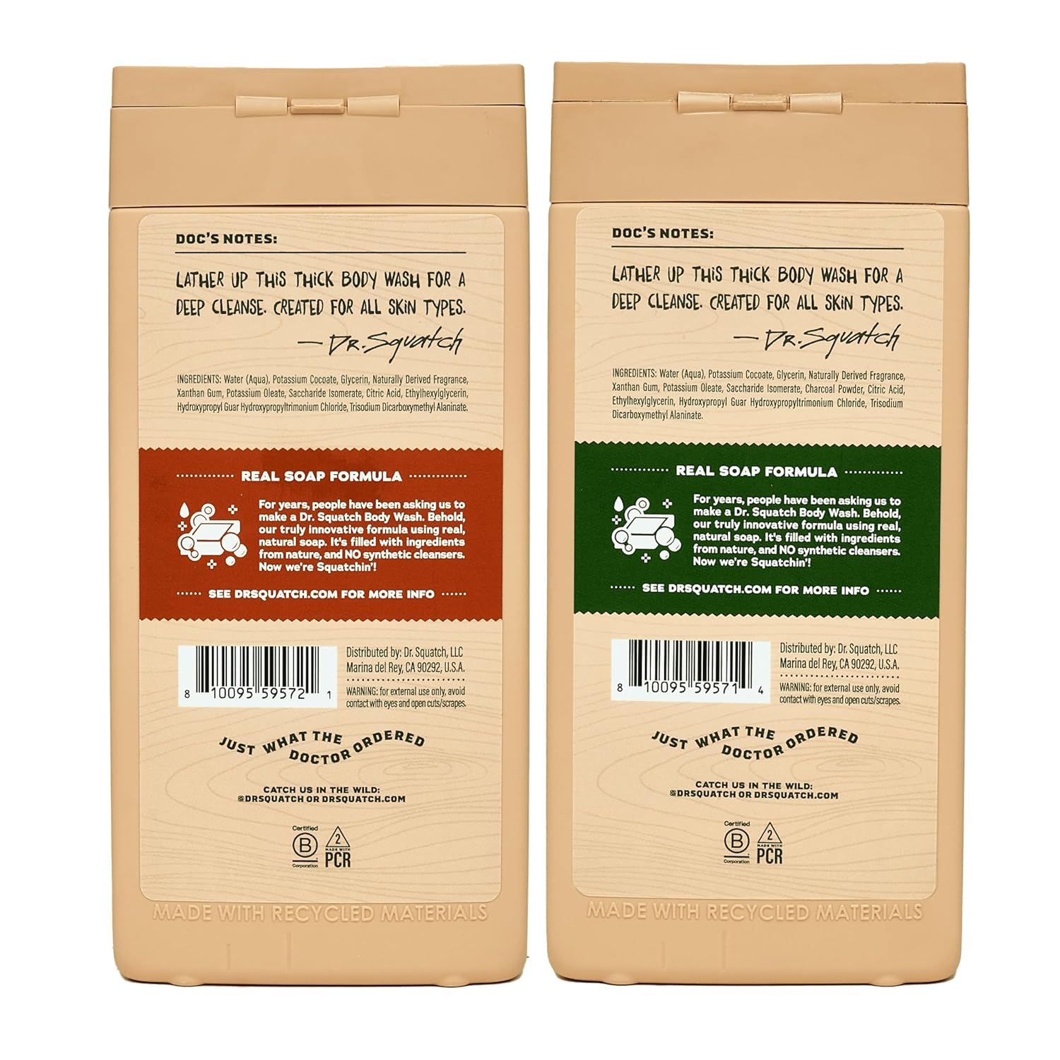 Dr. Squatch NEW Body Wash for Men with Nourishing, Natural Ingredients | No Paraben, Phthalate, Sulfate | All Day Moisture | Long Lasting Scent | Wood Barrel Bourbon & Pine Tar (14 oz, 2-Pack)
