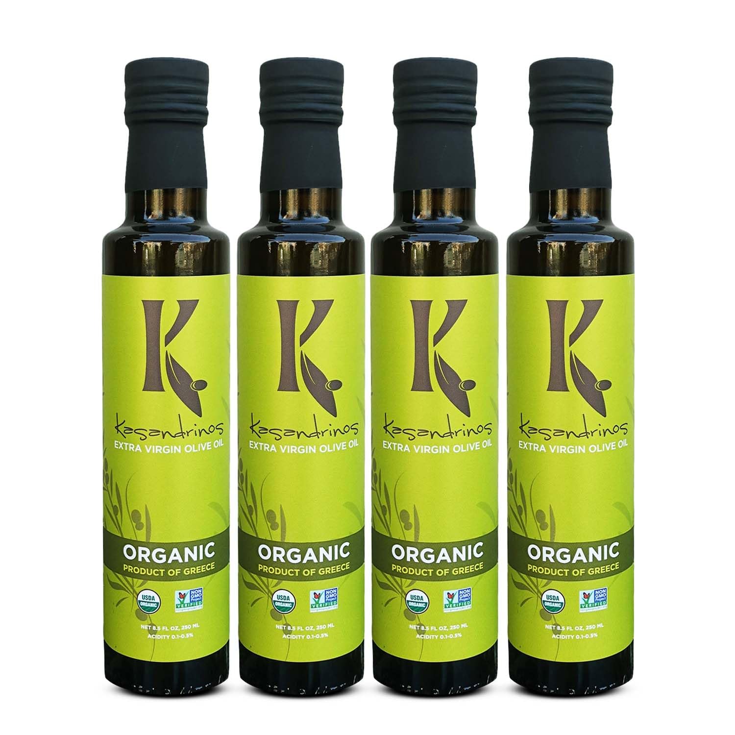 Kasandrinos Organic Olive Oil Extra Virgin, Polyphenol Rich Greek Olive Oil, 100% Organic First Cold Pressed, Mild + Delicate Flavor, Verified by Non GMO, 250/8.5 oz (Pack of 4)